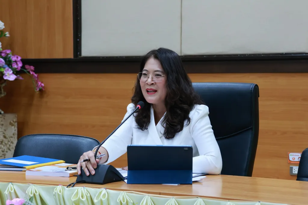 การตรวจประเมินคุณภาพการศึกษาภายใน ระดับคณะและมหาวิทยาลัย ปีการศึกษา 2567 ผู้ช่วยศาสตราจารย์ ดร.ปรียานุช พรหมภาสิต อธิการบดี กล่าวต้อนรับคณะกรรมการ การตรวจประเมินคุณภาพการศึกษาภายใน ระดับคณะและมหาวิทยาลัย