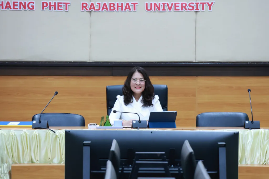 วันที่ 10 กันยายน 2568 ผู้ช่วยศาสตราจารย์ ดร.ปรียานุช พรหมภาสิต อธิการบดี กล่าวต้อนรับคณะกรรมการ การตรวจประเมินคุณภาพการศึกษาภายใน ระดับคณะและมหาวิทยาลัย ปีการศึกษา 2567 พร้อมด้วยผู้บริหาร อาจารย์ และผู้รับผิดชอบ เข้าร่วมรับการตรวจประเมินฯ ณ ห้องประชุมดาวเรือง ชั้น 9 อาคารเรียนรวมและอำนวยการ (อาคาร 14) มหาวิทยาลัยราชภัฏกำแพงเพชร