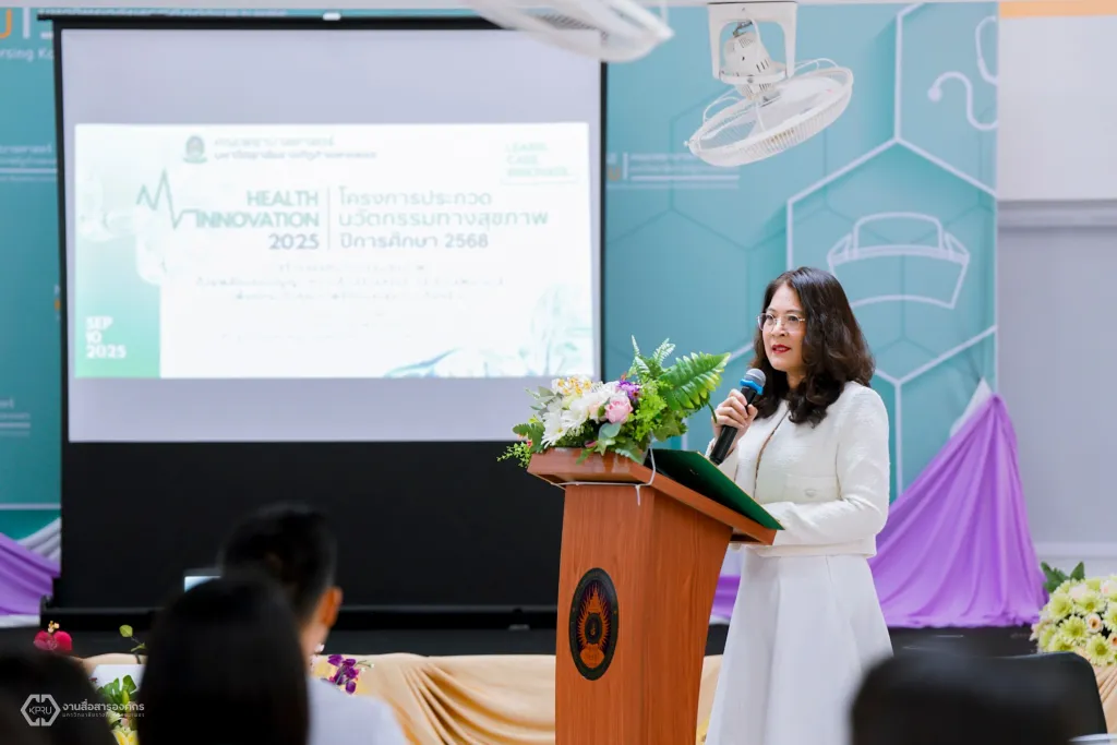 ผู้ช่วยศาสตราจารย์ ดร.สุภาเพ็ญ ปาณะวัฒนพิสุทธิ์ คณบดีคณะพยาบาศาสตร์ กล่าวรายงานว่า โครงการประกวดนวัตกรรมทางสุขภาพ เป็นส่วนหนึ่งของรายวิชานวัตกรรมทางสุขภาพ ของนักศึกษาพยาบาลศาสตร์ ชั้นปีที่ 2 ซึ่งกิจกรรมการเรียนการสอนสอดคล้องกับมาตรฐานการเรียนรู้ด้านผลลัพธ์ ที่ผู้เรียนต้องเป็นผู้ร่วมสร้างนวัตกรรม มีทักษะในศตรวรรษที่ 21 และมีความสามารถในการบูรณาศาสตร์ต่างๆ มาประยุกต์ใช้ เพื่อให้เกิดผลงานสร้างสรรค์ ในการส่งเสริมสุขภาพและแก้ปัญหาสุขภาพแก่ประชาชน โดยสามารถนำนวัตกรรมนี้ไปใช้ประโยชน์ในชุมชนได้ รวมทั้งเป็นเวทีแลกเปลี่ยนเรียนรู้สำหรับนักศึกษาพยาบาลศาสตร์อีกด้วย