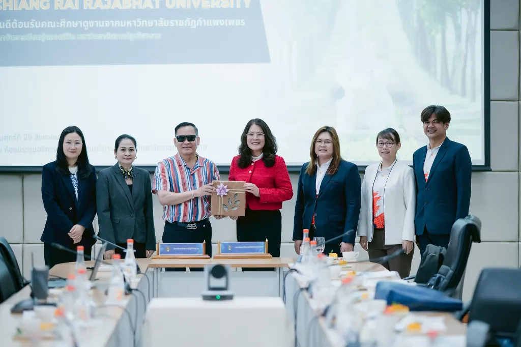 วันที่ 29 สิงหาคม 2568 ผู้ช่วยศาสตราจารย์ ดร.ปรียานุช พรหมภาสิต อธิการบดี นำคณะผู้บริหาร คณาจารย์ และบุคลากร ศึกษาดูงานสถาบันการเรียนรู้ตลอดชีวิต มหาวิทยาลัยราชภัฏเชียงราย เกี่ยวกับการจัดการศึกษาตลอดชีวิต เพื่อเทียบโอนเข้าสู่ระบบคลังหน่วยกิต โดยมีผู้ช่วยศาสตราจารย์ ดร.ศรชัย มุ่งไธสง อธิการบดี พร้อมด้วยคณะผู้บริหาร ให้การต้อนรับ