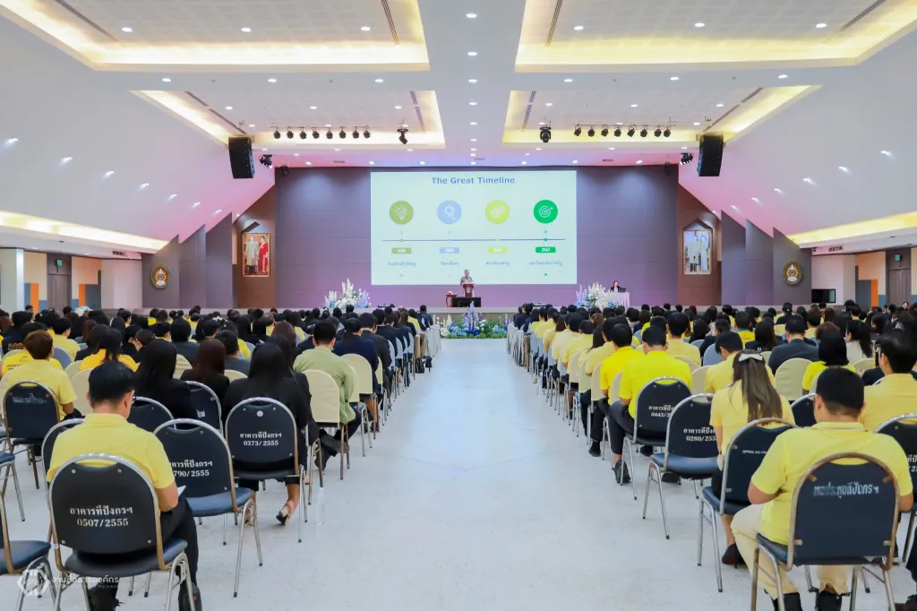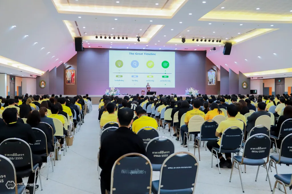 วันที่ 4 กันยายน 2568 พลเอก ดาว์พงษ์ รัตนสุวรรณ องคมนตรี บรรยายพิเศษ หัวข้อ “การน้อมนำพระบรมราโชบายด้านการศึกษาสู่การยกระดับมหาวิทยาลัยราชภัฏ“ และร่วมอภิปรายความสำคัญของมหาวิทยาลัยราชภัฏกับการพัฒนาเชิงพื้นที่ ทั้งด้านสังคม เศรษฐกิจ สิ่งแวดล้อม และการศึกษา และร่วมถอดบทเรียนภาพรวมการดำเนินงาน รวมทั้งการระดมสรรพกำลังและแหล่งทรัพยากรในการพัฒนามหาวิทยาลัยราชภัฏ นับตั้งแต่ปี 2560 จนถึงปัจจุบัน ให้กับผู้บริหาร คณาจารย์ บุคลากร ทั้งสายวิชาการและสายสนับสนุน ของมหาวิทยาลัยราชภัฏกำแพงเพชร จำนวน 410 คน เพื่อสร้างความร่วมมือทั้งภายในและภายนอกในการขับเคลื่อนและยกระดับมหาวิทยาลัย และเพื่อให้เกิดความภาคภูมิใจในจิตวิญญาณ “ราชภัฏ” ที่ได้รับ ความไว้วางพระราชหฤทัยให้เป็นส่วนหนึ่งในการดูแลประชาชนในท้องถิ่นทั่วภูมิภาคของประเทศ ต่อไป