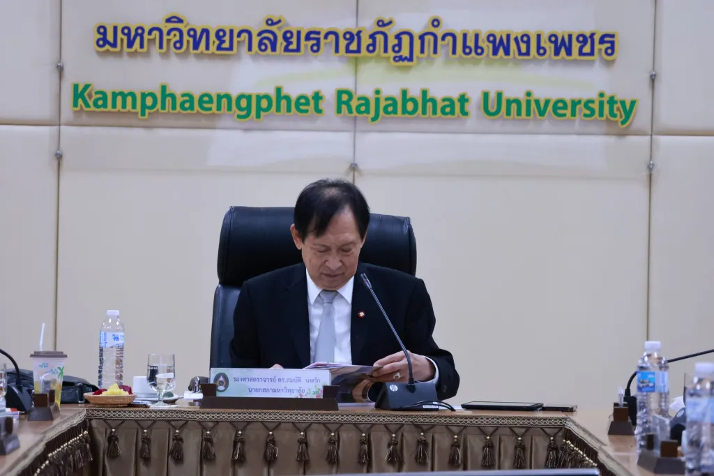 การประชุมสภามหาวิทยาลัยราชภัฏกำแพงเพชร ครั้งที่ 8/2568 รองศาสตราจารย์ ดร.สมบัติ นพรัก นายกสภามหาวิทยาลัยฯ เป็นประธานในการประชุมสภามหาวิทยาลัยราชภัฏกำแพงเพชร