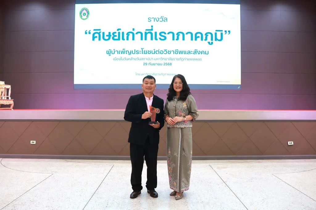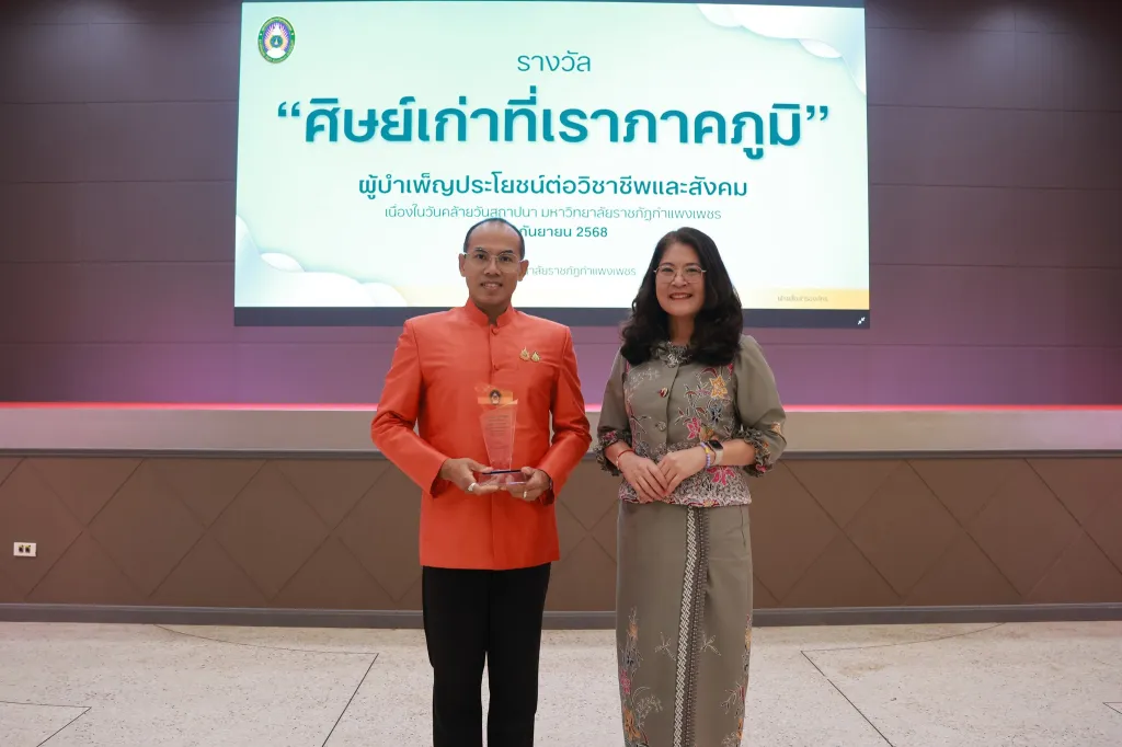 พิธีมอบรางวัลศิษย์เก่าที่เราภาคภูมิ ผู้บำเพ็ญประโยชน์ต่อวิชาชีพและสังคม เนื่องในวันคล้ายวันสถาปนามหาวิทยาลัยราชภัฏกำแพงเพชร 29 กันยายน 2568 🧡🤍
