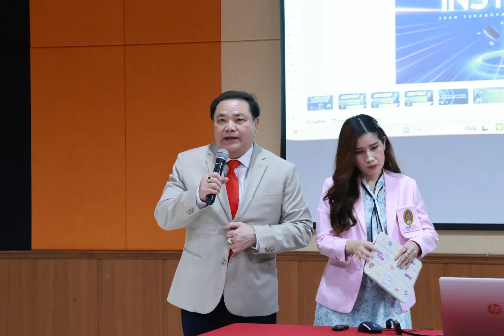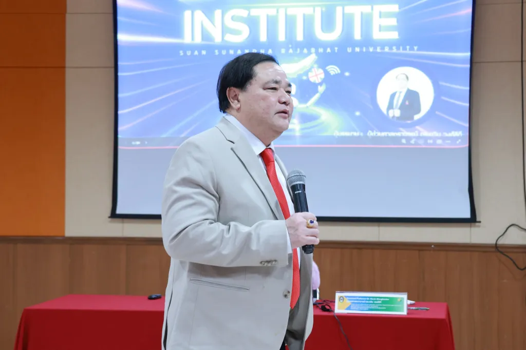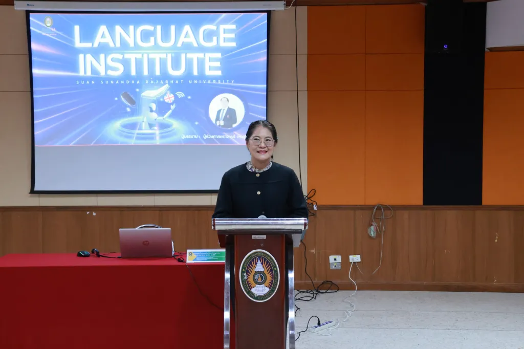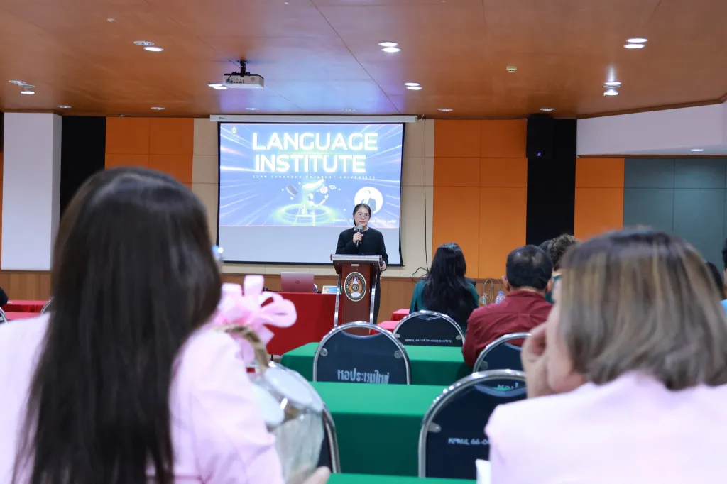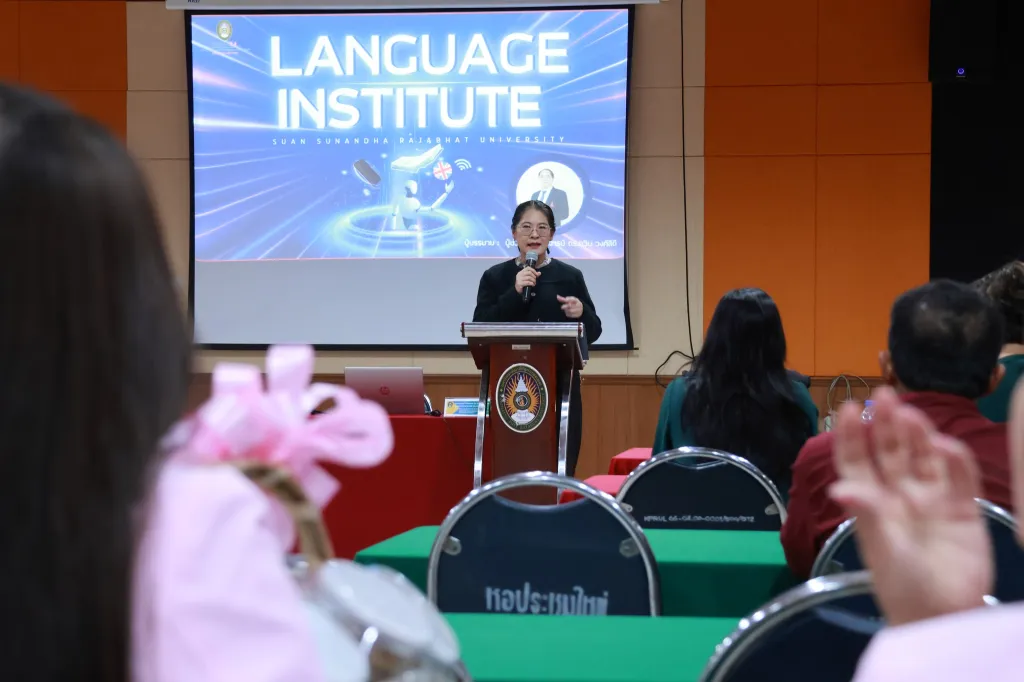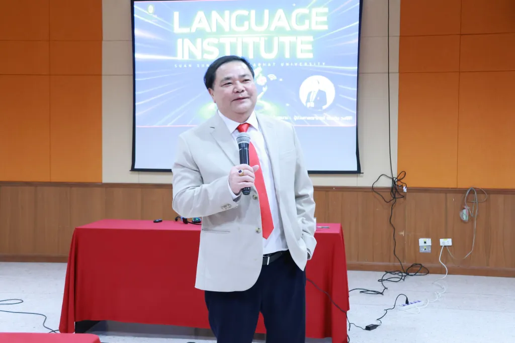 ผู้ช่วยศาสตราจารย์ ดร.อนุสิษฐ์ พันธ์กล่ำ หัวหน้าศูนย์ภาษา งานพัฒนาสมรรถนะดิจิทัลและภาษาต่างประเทศกล่าวรายงานวัตถุประสงค์ของการจัดกิจกรรมในครั้งนี้ขึ้นเพื่อพัฒนาสมรรถนะภาษาอังกฤษในการสื่อสารและประกอบอาชีพของประชาชนในชุมชน พร้อมทั้งยกระดับคุณภาพชีวิตของประชาชนในชุมชนโดยการใช้ภาษาอังกฤษ การเพิ่มศักยภาพในการทำงาน และใช้ในการหาความรู้เพิ่มเติมในชีวิตประจำวัน เพื่อส่งเสริมการเรียนรู้ตลอดชีวิต วิทยากรโดยผู้ช่วยศาสตราจารย์ ดร.กวิน วงศ์ลีดี ผู้อำนวยการสถาบันภาษา มหาวิทยาลัยราชภัฏสวนสุนันทา