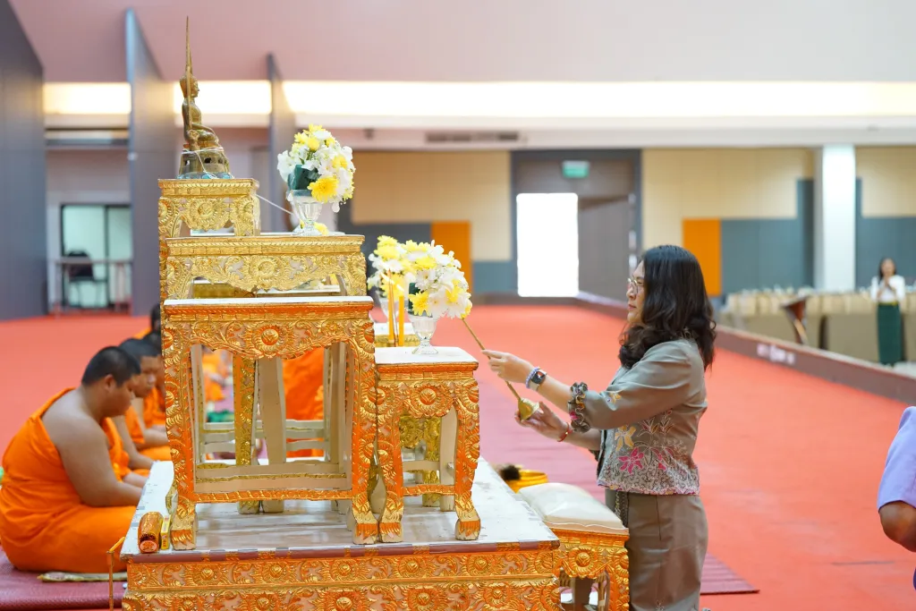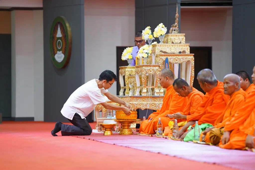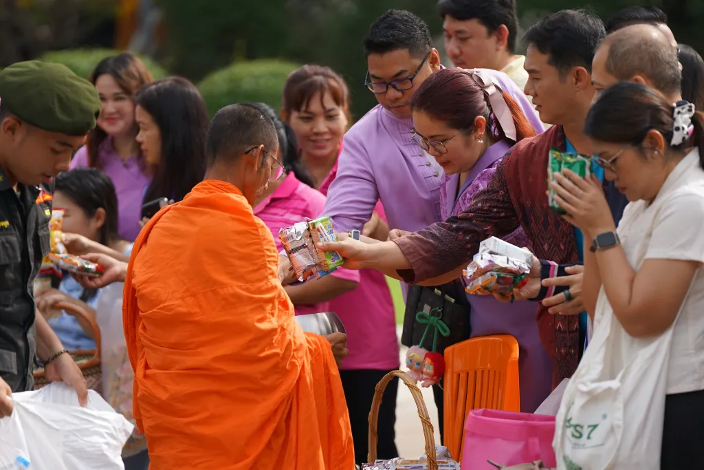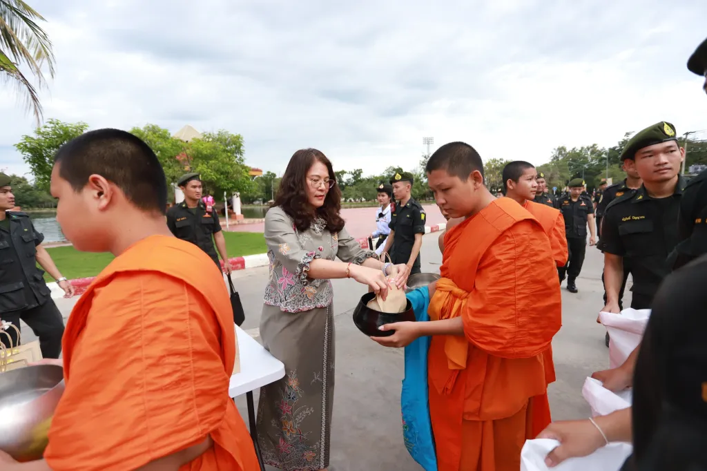 วันคล้ายวันสถาปนา มหาวิทยาลัยราชภัฏกำแพงเพชร ผู้ช่วยศาสตราจารย์ ดร.ปรียานุช พรหมภาสิต อธิการบดี เป็นประธานในพิธีทำบุญตักบาตร