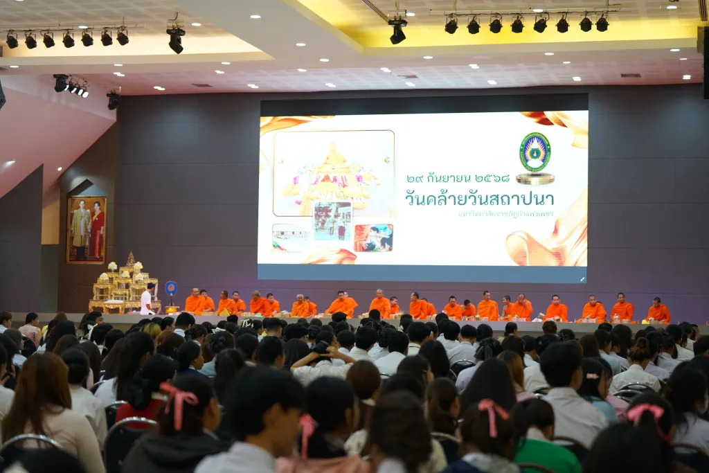เมื่อวันที่ 29 กันยายน 2568 ผู้ช่วยศาสตราจารย์ ดร.ปรียานุช พรหมภาสิต อธิการบดี เป็นประธานในพิธีทำบุญตักบาตร เนื่องในวันคล้ายวันสถาปนา มหาวิทยาลัยราชภัฏกำแพงเพชร ณ ห้องประชุมราชพฤกษ์ ชั้น 3 อาคารทีปังกรัศมีโชติ โดยมีคณะผู้บริหาร อาจารย์ บุคลากร นักศึกษา ศิษย์เก่า และผู้เกษียณอายุราชการ เข้าร่วมพิธี