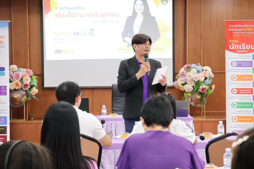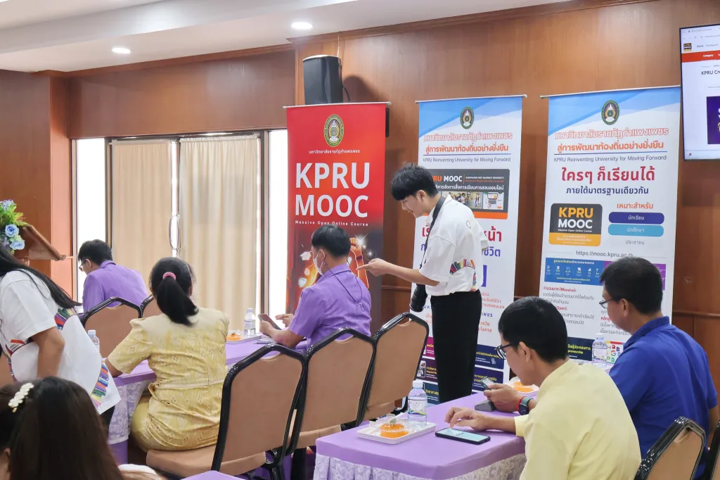 การลงพื้นที่ให้ข้อมูลด้านระบบการเรียนการสอนผ่านแพลตฟอร์มออนไลน์ KPRU MOOC นำร่องเปิดรายวิชาทั่วไป 12 รายวิชา ซึ่งนักศึกษาทุกคนจำเป็นต้องเรียนในรั้วมหาวิทยาลัยราชภัฏ และสามารถเทียบโอนเก็บไว้ในระบบคลังหน่วยกิต Credit Bank ตามความร่วมมือทางวิชาการ MRJ GEMOOC MOU Reinventing Universit การจัดการศีกษารายวิชาศึกษาทั่วไปของมหาวิทยาลัยราชภัฏภาคเหนือเพื่อการเรียนรู้ตลอดชีวิตของมหาวิทยาลัยราชภัฏกลุ่มภาคเหนือทั้ง 8 แห่ง ภายใต้ยุทธศาสตร์การพัฒนาประเทศและโครงการพลิกโฉมมหาวิทยาลัย (Reinventing University) และสร้างความเข้มแข็งทางวิชาการ การจัดการศึกษา โดยการแลกเปลี่ยนเรียนรู้และพัฒนาความร่วมมือในการบริหารจัดการมหาวิทยาลัยร่วมกัน ภายใต้ ความเปลี่ยนแปลงของบริบททางสังคม เศรษฐกิจ เทคโนโลยี และแนวทางการเรียนรู้ของประชาชน ในโลกยุคใหม่ เพื่อสร้างความยั่งยืนต่อไปในอนาคต