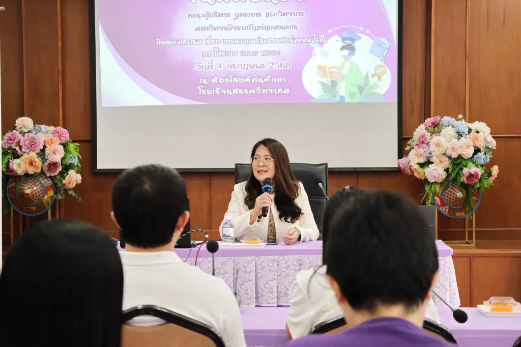 วันที่ 4 กรกฎาคม 2568 ผู้ช่วยศาสตราจารย์ ดร.ปรียานุช พรหมภาสิต อธิการบดี พร้อมด้วยผู้ช่วยศาสตราจารย์ ดร.ชญาดา กลิ่นจันทร์ รองอธิการบดีฯ, ผู้ช่วยศาสตราจารย์ ดร.วนัสนันท์ ศิริรัตนะ ผู้อำนวยการมหาวิทยาลัยราชภัฏกำแพงเพชร แม่สอด, ผู้ช่วยศาสตราจารย์พรหมเมศ วีระพันธ์ ผู้อำนวยการสำนักวิทยบริการฯ, นายวันเฉลิม พูนใจสม, นางสาวอรปรียา คำแพ่ง นักวิชาการคอมพิวเตอร์ชำนาญการ, คณาจารย์ และบุคลากรมหาวิทยาลัยราชภัฏกำแพงเพชร ร่วมให้ข้อมูลในโครงการการพัฒนาแพลตฟอร์มออนไลน์ KPRU MOOC เพื่อเก็บไว้ในระบบคลังสะสมหน่วยกิต Credit Bank ณ ห้องประชุมโสตทัศน์ โรงเรียนสรรพวิทยาคม อำเภอแม่สอด จังหวัดตาก