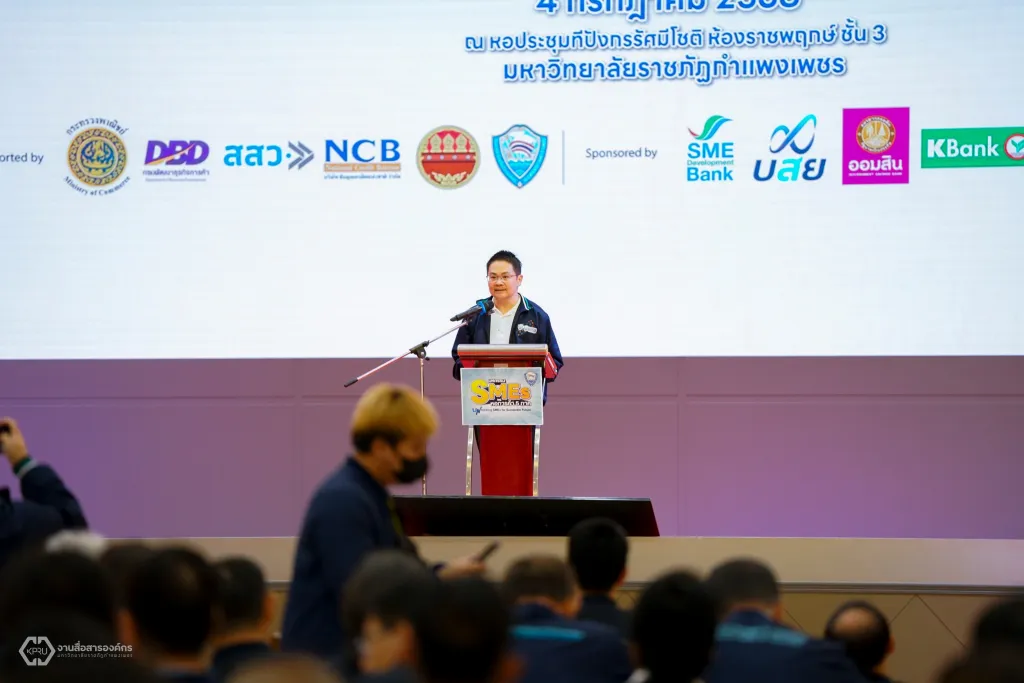 วันนี้ 4 กรกฎาคม 2568 อธิการบดีมหาวิทยาลัยราชภัฏกำแพงเพชร มอบหมายให้ผู้ช่วยศาสตราจารย์ ดร.ชาลี ตระกูล รองอธิการบดีฝ่ายบริการวิชาการและจัดหารายได้ และผู้ช่วยศาสตราจารย์ ดร.กมลวัฒน์ ภูวิชิต ผู้ช่วยอธิการบดี เป็นผู้แทนมหาวิทยาลัยฯ เข้าร่วมงานมหกรรรม SMEs หอการค้า 5 ภาค ภายใต้ชื่อ "Unlocking SMEs for Sustainable Future" พร้อมขับเคลื่อนผู้ประกอบการสู่ยุคใหม่ และการประชุมคณะกรรมการบริหารหอการค้าไทยและสภาหอการค้าแห่งประเทศไทยสัญจร และการอบรม YEC Connect ทั่วประเทศ ประจำปี 2568 ระหว่าง วันที่ 3 - 5 กรกฎาคม 2568 ณ อาคารทีปังกรรัศมีโชติ มหาวิทยาลัยราชภัฏกำแพงเพชร โดยมีผู้บริหารและผู้ประกอบการรุ่นใหม่จากทั่วประเทศเข้าร่วมกว่า 300 คน เพื่อร่วมหารือแนวทางขับเคลื่อนเศรษฐกิจของประเทศไทย และเสริมสร้างศักยภาพผู้ประกอบการในท้องถิ่นให้เข้มแข็งอย่างยั่งยืน