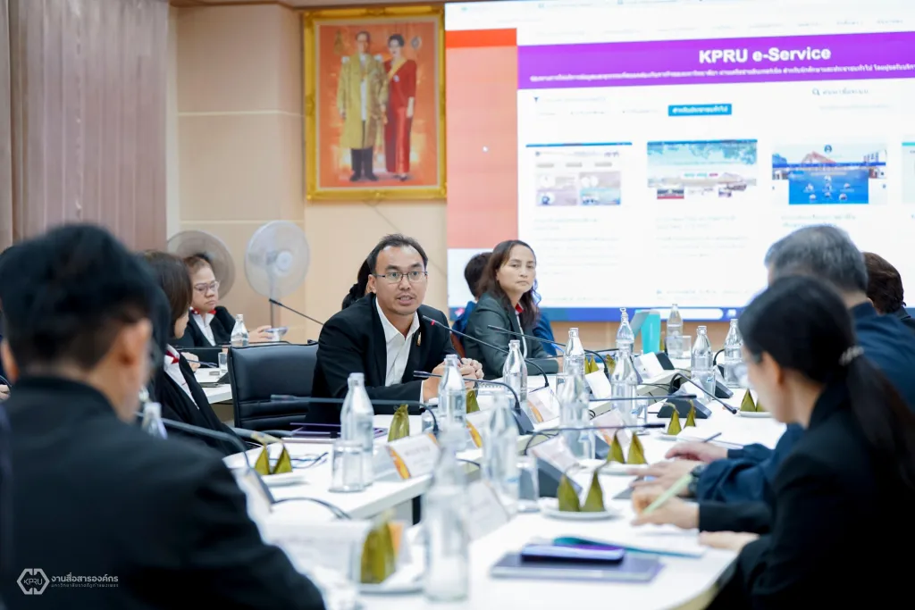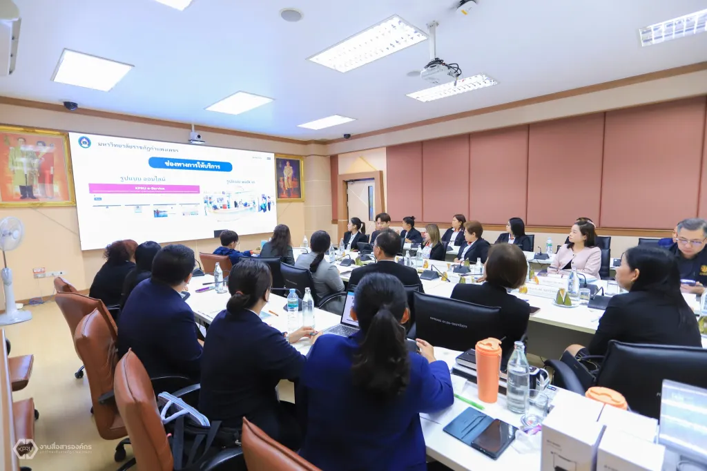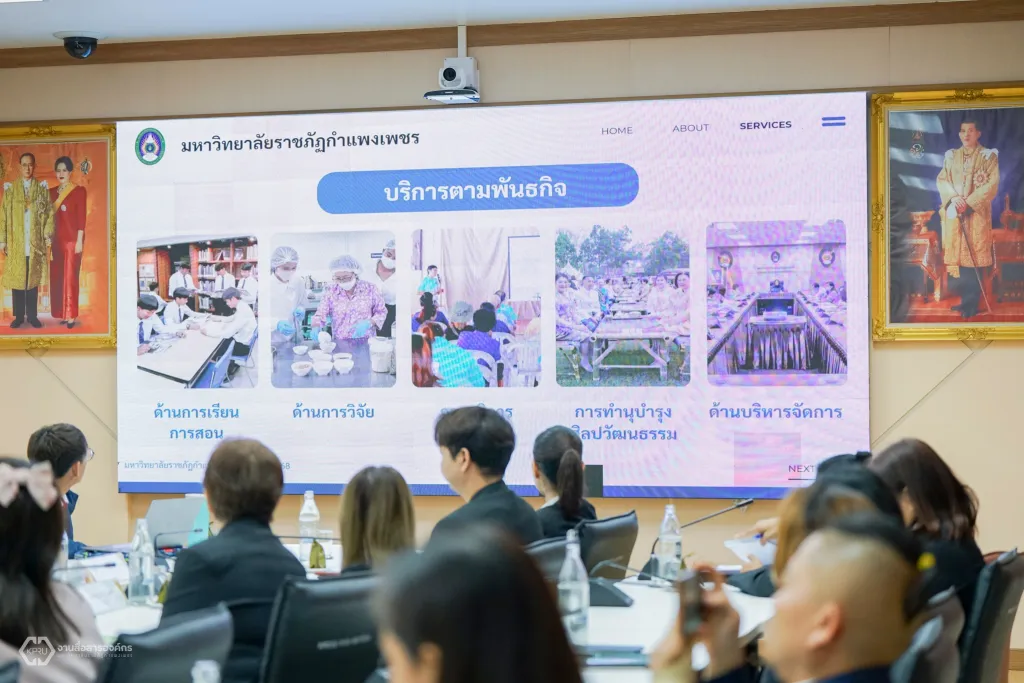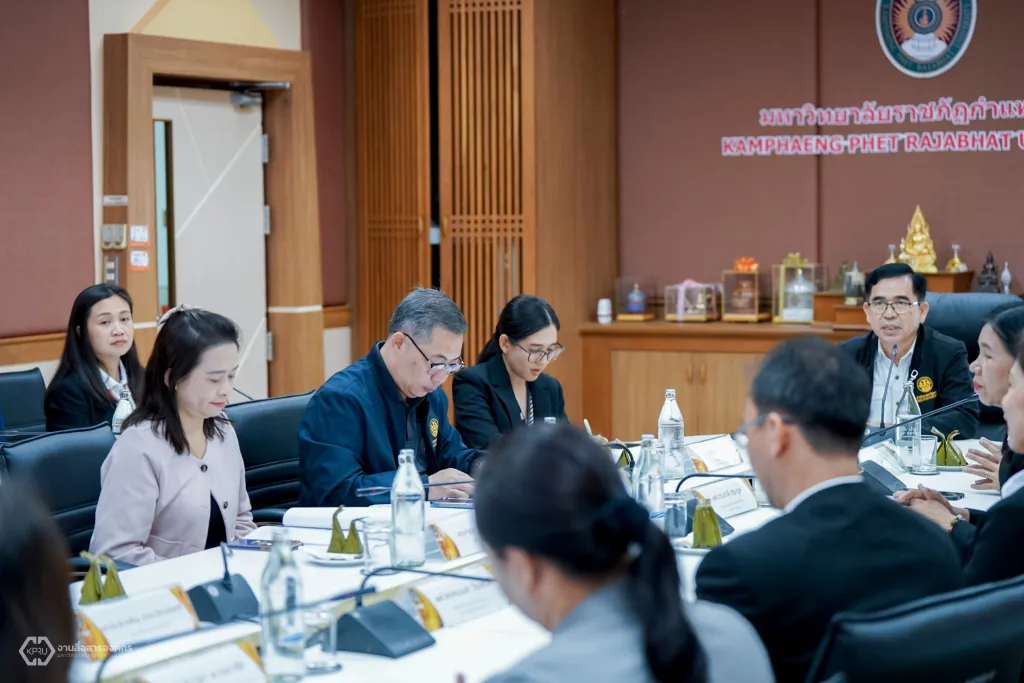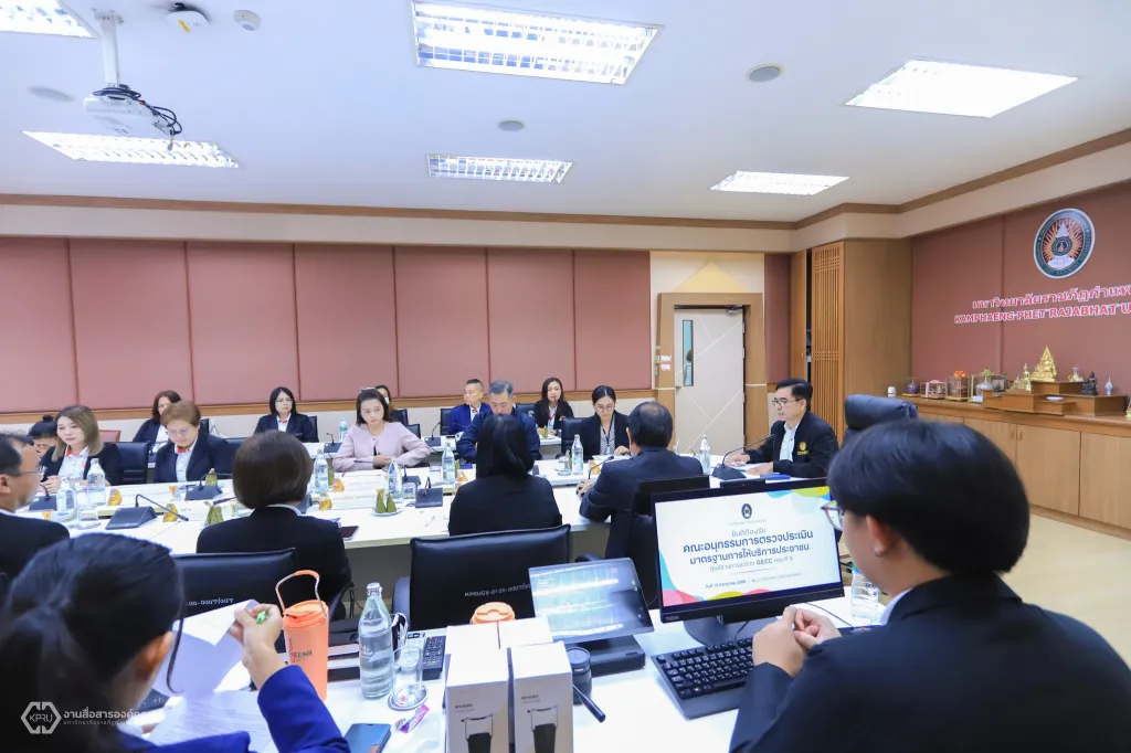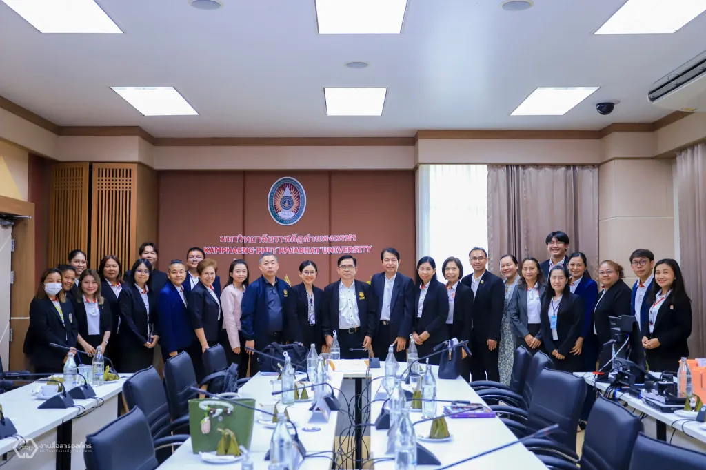 เมื่อวันที่ 15 กรกฎาคม 2568 ผู้ช่วยศาสตราจารย์ ดร.ชัชชัย พวกดี รองอธิการบดีฝ่ายบริหาร พร้อมด้วยผู้ช่วยศาสตราจารย์ ดร.ชาลี ตระกูล รองอธิการบดีฝ่ายบริการวิชาการและจัดหารายได้ ดร.มะลิวัลย์ รอดกำเหนิด ผู้อำนวยการกองกลาง สำนักงานอธิการบดี และคณะผู้บริหาร คณาจารย์ บุคลากร มหาวิทยาลัยราชภัฏกำแพงเพชร ร่วมให้การต้อนรับคณะอนุกรรมการตรวจประเมินมาตรฐานศูนย์ราชการสะดวก คณะที่ 9 นำโดย นายธีรวุธ กลั่นเลี้ยง ประธานอนุกรรมการฯ นางสาวโสรญา ขาวสว่าง อนุกรรมการและเลขานุการ (สำนักงาน ก.พ.ร.) นายโชคชัย หาญนิมิตกุล อนุกรรมการและเลขานุการ (ส.ป.น.) และนางสาวศรุดา นิยมพงษ์ ผู้ช่วยเลขานุการ ณ ห้องประชุมดารารัตน์ ชั้น 4 อาคารเรียนรวมและอำนวยการ (อาคาร 14) มหาวิทยาลัยราชภัฏกำแพงเพชร