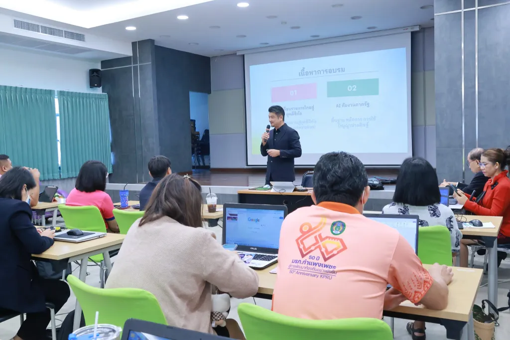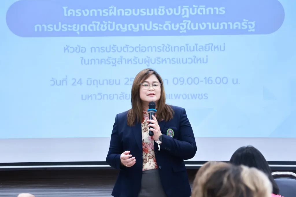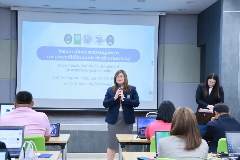 วันที่ 24 มิถุนายน 2568 ผู้ช่วยศาสตราจารย์ ดร.ชญาดา กลิ่นจันทร์ รองอธิการดีฝ่ายวิจัย กิจการนักศึกษาและศิลปวัฒนธรรม เป็นประธานในพิธีเปิดโครงการอบรมเชิงปฏิบัติการด้าน AI เจ้าหน้าที่รัฐเพื่อเพิ่มประสิทธิภาพการปฏิบัติหน้าที่ราชการ จัดโดยสถาบันวิจัยและพัฒนาสมรรถนะอาชีพประเทศไทย ร่วมกับมหาวิทยาลัยราชภัฏกำแพงเพชร และสำนักงานวิจัยและชาติ (วช.) ซึ่งจัดขึ้นระหว่างวันที่ 24 - 25 มิถุนายน 2568 ณ อาคารศูนย์ภาษาและคอมพิวเตอร์ มหาวิทยาลัยราชภัฏกำแพงเพชร