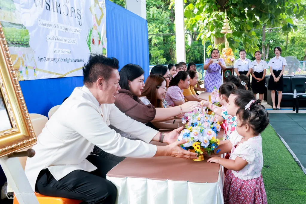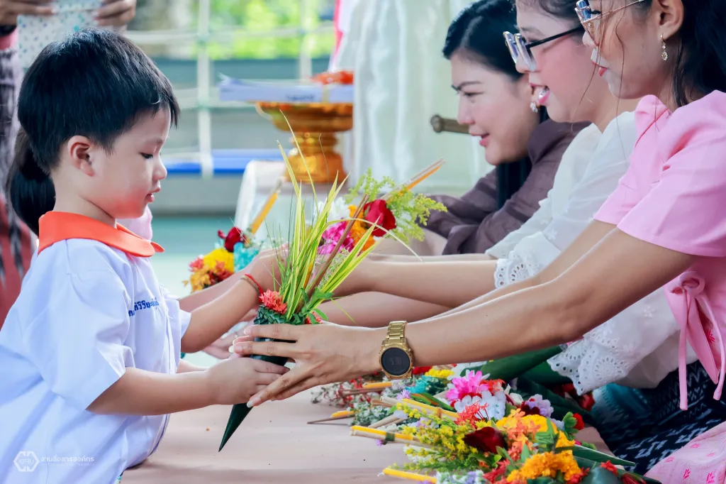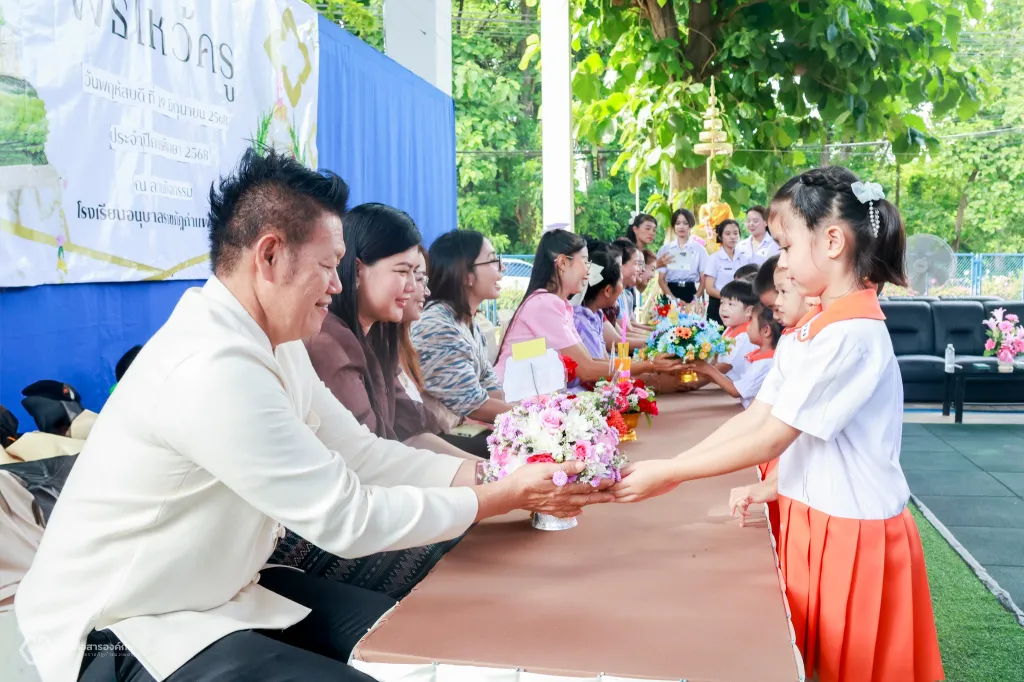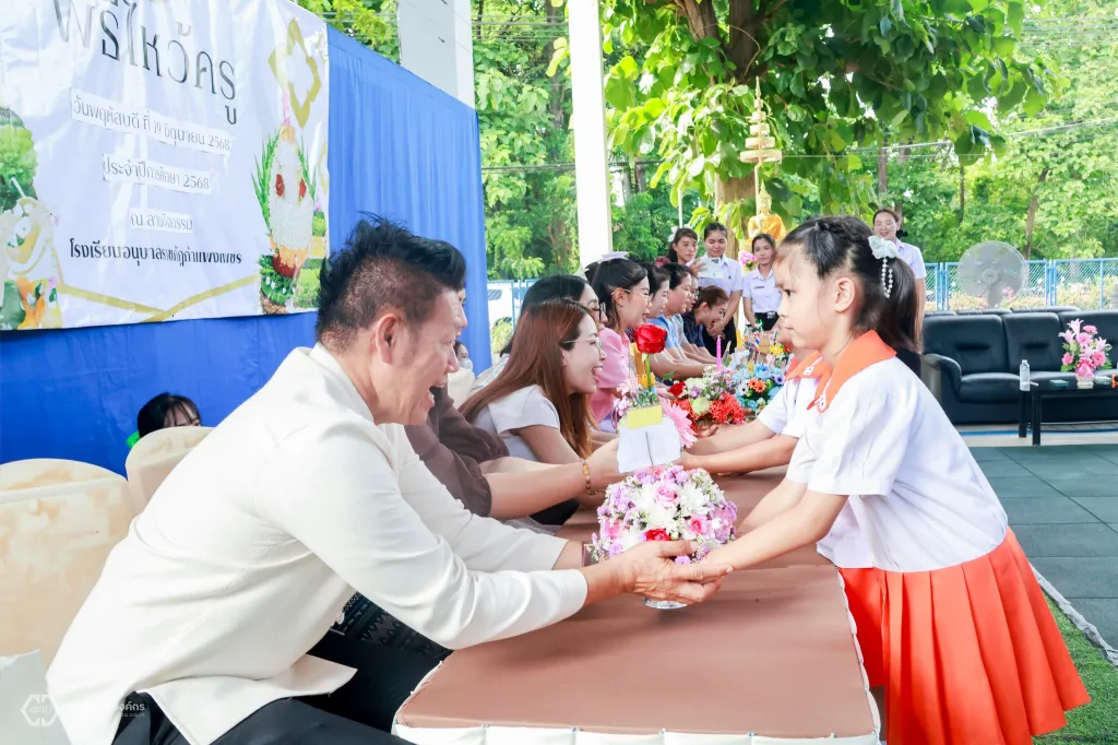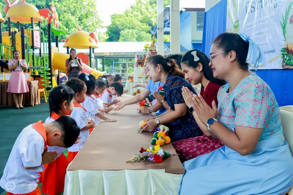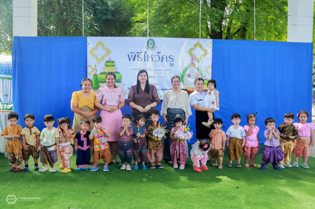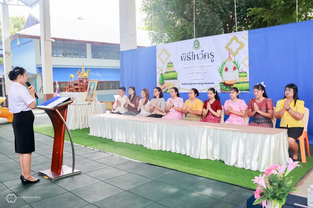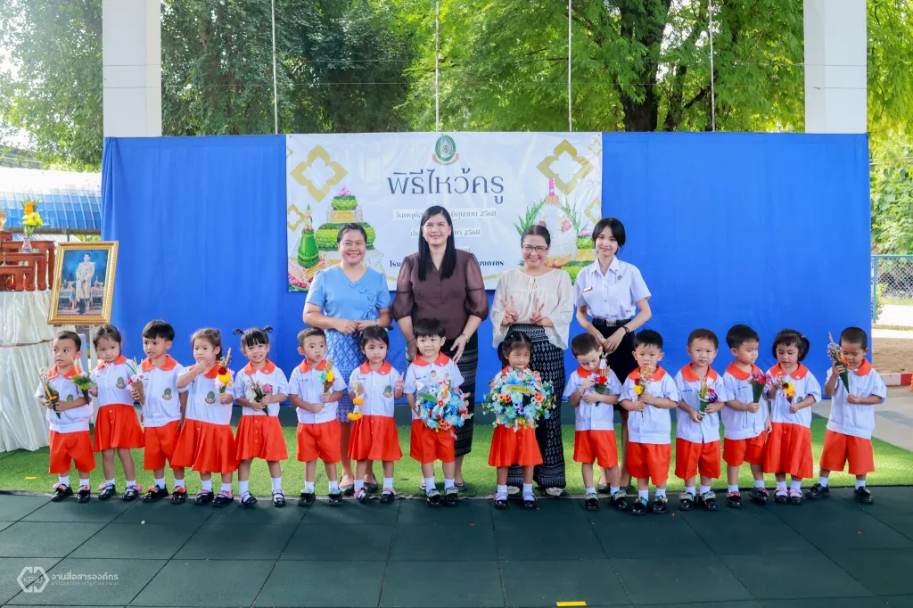 พร้อมด้วยอาจารย์จุฑาทิพย์ โอบอ้อม ผู้อำนวยการโรงเรียน รองผู้อำนวยการ พร้อมด้วบคณะครูประจำชั้นบริบาลและระดับชั้นอนุบาล และนักศึกษาพี่เลี้ยง เข้าร่วมกิจกรรมในครั้งนี้ ภายในกิจกรรม มีตัวแทนนักเรียนทั้งในระดับชั้นบริบาลและอนุบาล ถือพานดอกไม้ ตามด้วยกรวยดอกไม้ ธูปเทียน ที่นักเรียนได้นำมาร่วมพิธีไหว้ครู เพื่อเป็นการแสดคงความเคารพต่อคุณครู