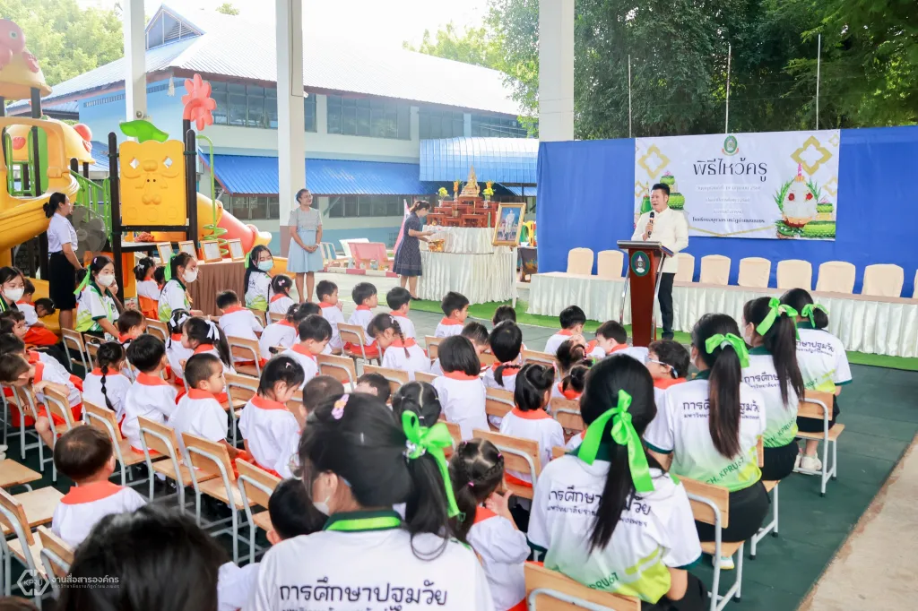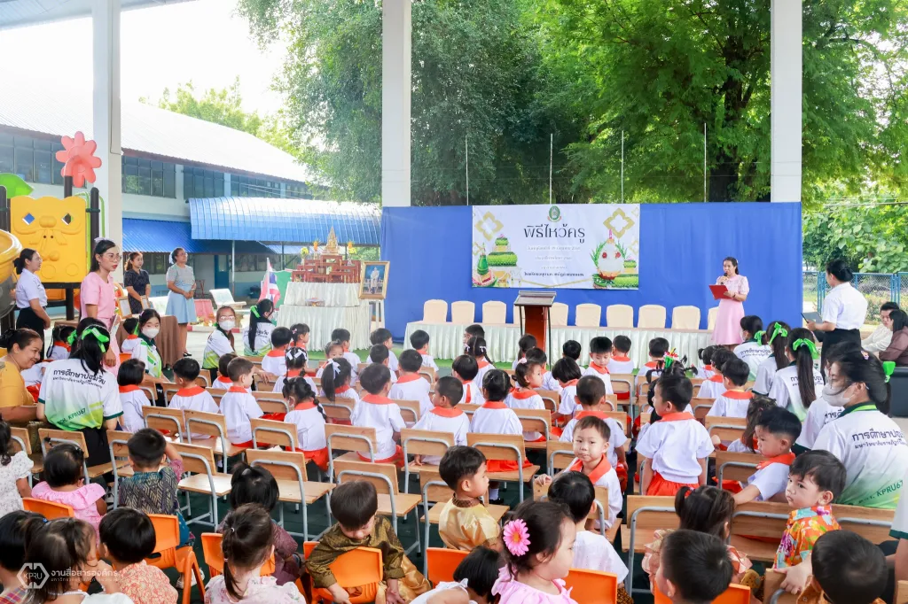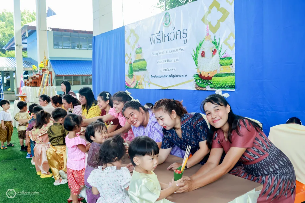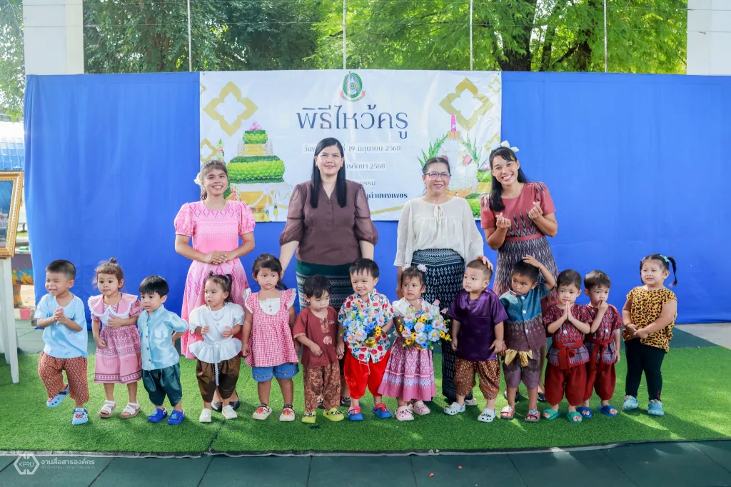 โรงเรียนอนุบาลราชภัฏกำแพงเพชร คณะครุศาสตร์ จัดพิธีไหว้ครู ประจำปีการศึกษา 2568 ณ ลานกิจกรรมโรงเรียนอนุบาลราชภักกำแพงเพชร มหาวิทยาลัยราชภัฏกำแพงเพชร โดยมี ผู้ช่วยศาสตราจารย์ ดร.ประจบ ขวัญมั่น คณบดีคณะครุศาสตร์เป็นประธานในพิธี