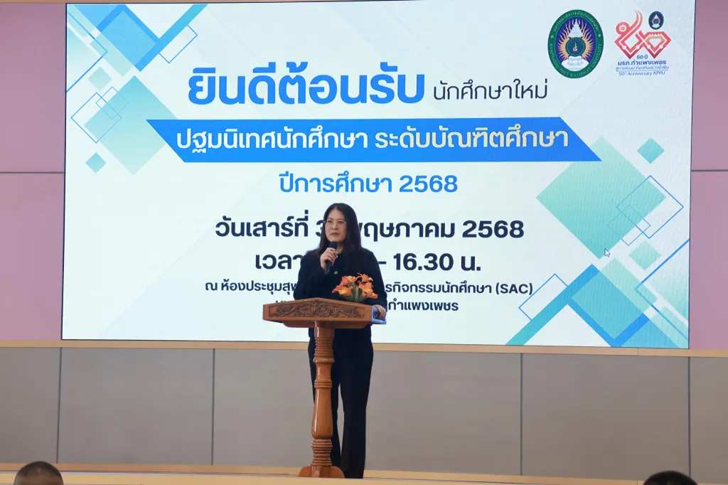 มหาวิทยาลัยราชภัฏกำแพงเพชร จัดกิจกรรม "ปฐมนิเทศนักศึกษาระดับบัณฑิตศึกษา" ประจำปีการศึกษา 2568 ณ ห้องประชุมสุพรรณิการ์ อาคารกิจการนักศึกษา (อาคาร SAC)