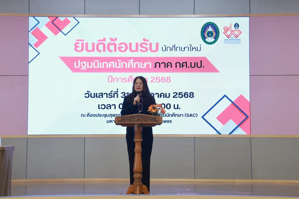 วันที่ 31 พฤษภาคม 2568 เวลา 09.00 น. มหาวิทยาลัยราชภัฏกำแพงเพชร จัดกิจกรรม "ปฐมนิเทศนักศึกษาใหม่ สำหรับนักศึกษาการศึกษาสำหรับบุคลากรประจำการ (กศ.บป.)" ประจำปีการศึกษา 2568 ณ ห้องประชุมสุพรรณิการ์ อาคารกิจการนักศึกษา (อาคาร SAC) โดยมีผู้ช่วยศาสตราจารย์ ดร.ปรียานุช พรหมภาษิต อธิการบดีมหาวิทยาลัยราชภักกำแพงเพชร เป็นประธานและกล่าวให้โอวาทกับนักศึกษา พร้อมด้วยผู้บริหารและคณาจารย์ร่วมต้อนรับ