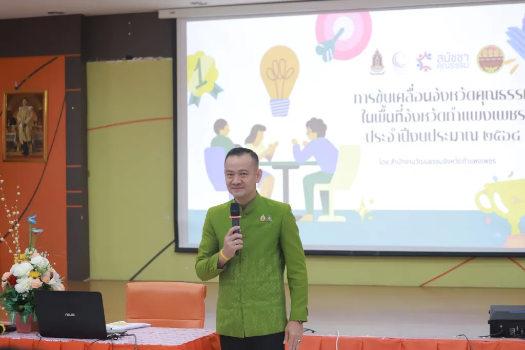 โครงการนี้จัดขึ้นโดยคณะผู้วิจัยของมหาวิทยาลัยราชภัฏกำแพงเพชรและมหาวิทยาลัยราชภัฏนครสวรรค์ เพื่อดำเนินการแลกเปลี่ยนสะท้อนความคิดบทเรียนความสำเร็จ การขับเคลื่อนจังหวัดคุณธรรม ตามประกาศเจตนารมณ์ ปี 2567 และจังหวัดคุณธรรมมีบทบาทและแนวทางขับเคลื่อนเครือข่ายคุณธรรมต้นแบบ บุคคล ครอบครัว ชุมชน และองค์กร จังหวัดส่งเสริมคุณธรรมในพื้นที่จังหวัดกำแพงเพชร จำนวน 50 คน ซึ่งโครงการนี้คณะผู้วิจัยฯ ได้รับมอบหมายจากศูนย์คุณธรรม (องค์การมหาชน) ให้ดำเนินการขับเคลื่อนสมัชชาคุณธรรม การจัดการความรู้ถอดบทเรียนความสำเร็จ กระบวนการขับเคลื่อนจังหวัดส่งเสริมคุณธรรมในพื้นที่จังหวัดกำแพงเพชร ปีงบประมาณ 2568