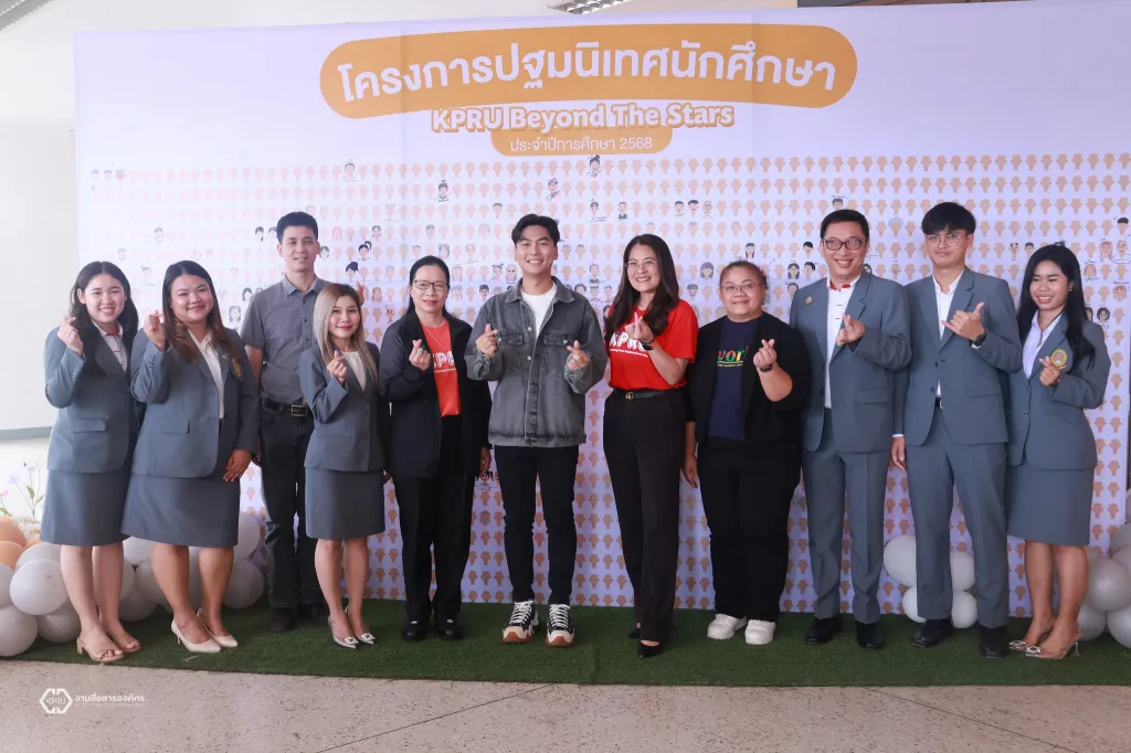 วันที่ 26 พฤษภาคม 2568 องค์การบริหารนักศึกษาภาคปกติ กองพัฒนานักศึกษา มหาวิทยาลัยราชภัฏกำแพงเพชร จัดกิจกรรมปฐมนิเทศนักศึกษาใหม่ ประจำปีการศึกษา 2568 : KPRU Beyond the Star ก้าวข้ามขีดจำกัด สู่แสงดาว โดยได้รับเชิญนักแสดงและยูทูปเบอร์ชื่อดัง คุณเจแปน ภาณุพรรณ จันทนะวงษ์ มาร่วมแชร์ประสบการณ์และไอเดียในการใช้ชีวิตในมหาวิทยาลัยอย่างไรให้มีความสุข ให้แก่นักศึกษาชั้นปีที่ 1 มหาวิทยาลัยราชภัฏกำแพงเพชร ณ ห้องประชุมราชพฤษ์ ชั้น 3 อาคารทีปังกรรัศมีโชติ มหาวิทยาลัยราชภัฏกำแพงเพชร