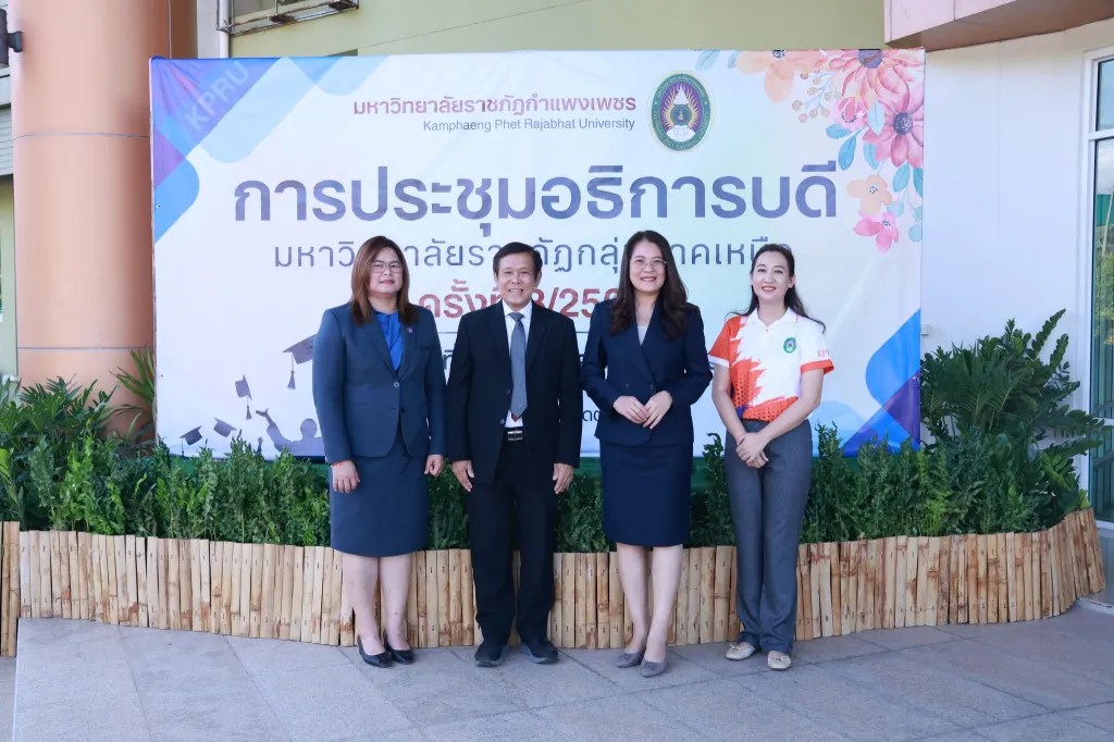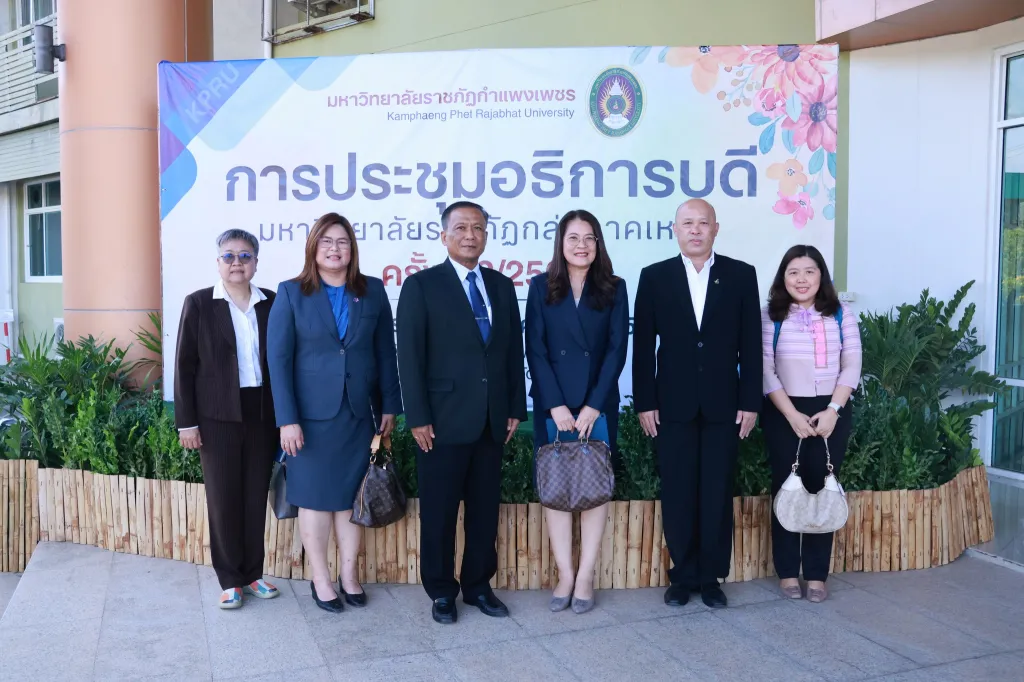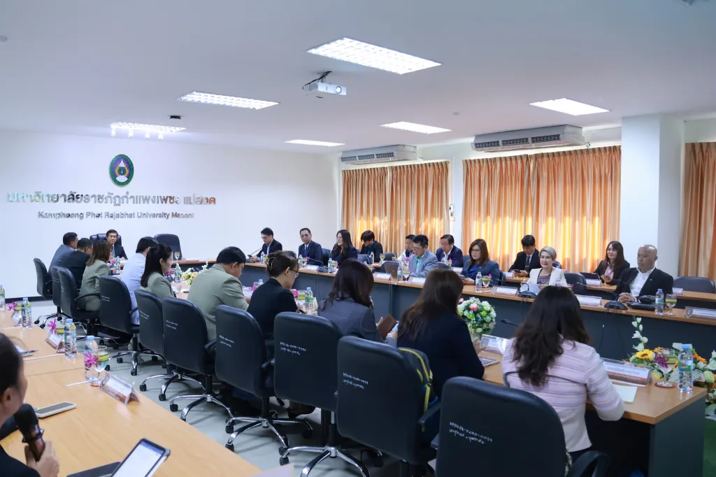 วันที่ 6 พฤษภาคม 2568 ผู้ช่วยศาสตราจารย์ ดร.ปรียานุช พรหมภาสิต อธิการบดีมหาวิทยาลัยราชภัฏกำแพงเพชร พร้อมด้วยรองอธิการบดี ผู้ช่วยอธิการบดี ร่วมการประชุมอธิการบดีมหาวิทยาลัยราชภัฏภูมิภาค-กลุ่มภาคเหนือ ครั้งที่ 3/2568 โดยมีผู้ช่วยศาสตราจารย์ ดร.ชุมพล เสมาขันธ์ ประธานที่ประชุมอธิการบดีมหาวิทยาลัยราชภัฏภูมิภาค - กลุ่มภาคเหนือ และอธิการบดีมหาวิทยาลัยราชภัฏพิบูลสงคราม เป็นประธานในการประชุมฯ พร้อมด้วยอธิการบดี รองอธิการบดี ผู้บริหาร มหาวิทยาลัยราชภัฏ-กลุ่มภาคเหนือทั้ง 8 แห่ง เข้าร่วม ณ ห้องประชุมบุษราคัม มหาวิทยาลัยราชภัฏกำแพงเพชร แม่สอด