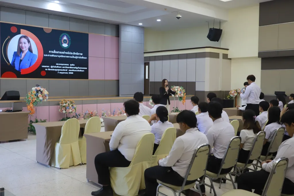 กองพัฒนานักศึกษา จัดกิจกรรมสัมมนาผู้นำนักศึกษา ประจำปีการศึกษา 2568 ผู้ช่วยศาสตราจารย์ ดร.ปรียานุช พรหมภาสิต อธิการบดี เป็นประธานในพิธีเปิดกิจกรรมสัมมนาผู้นำนักศึกษา ให้กับนักศึกษาองค์การบริหารนักศึกษา สโมสรนักศึกษาทั้ง 6 คณะ