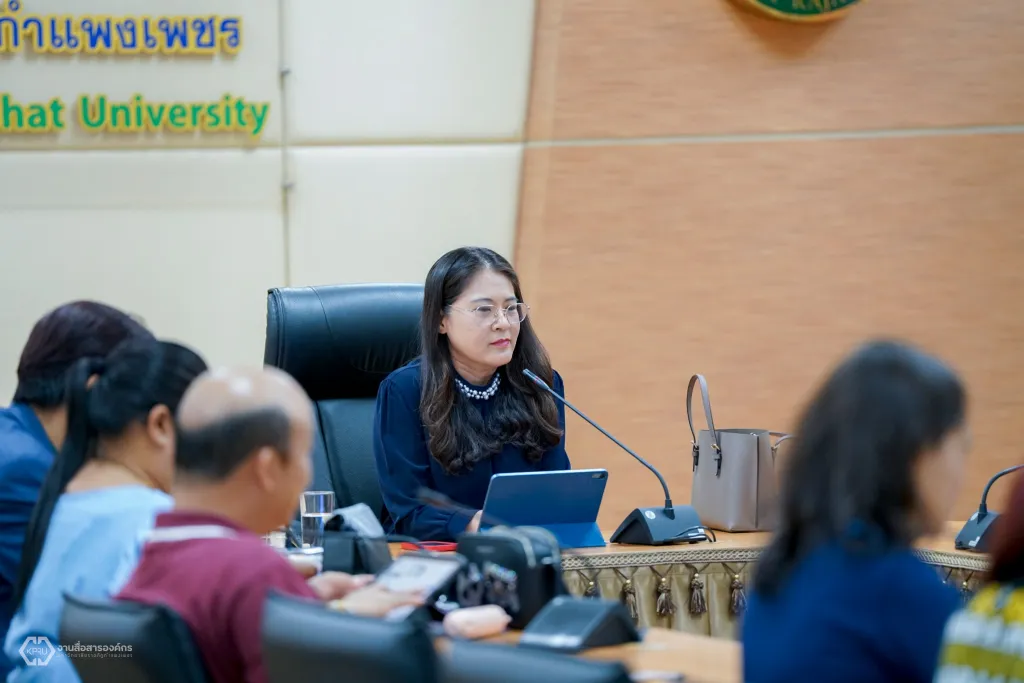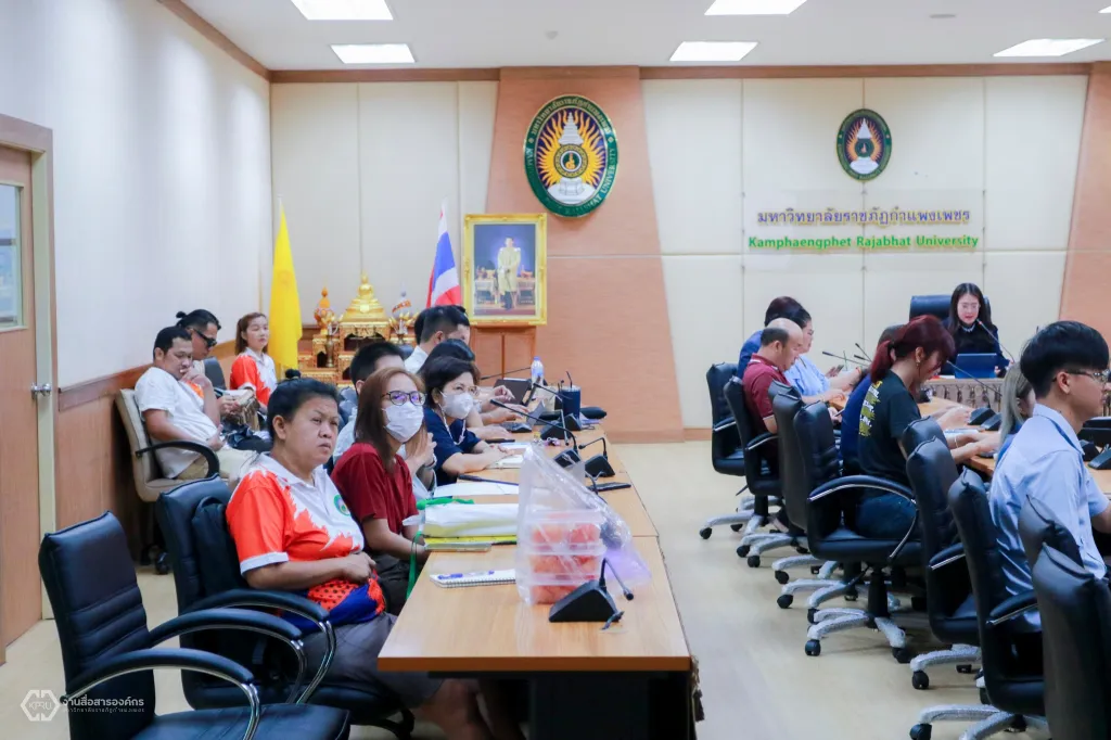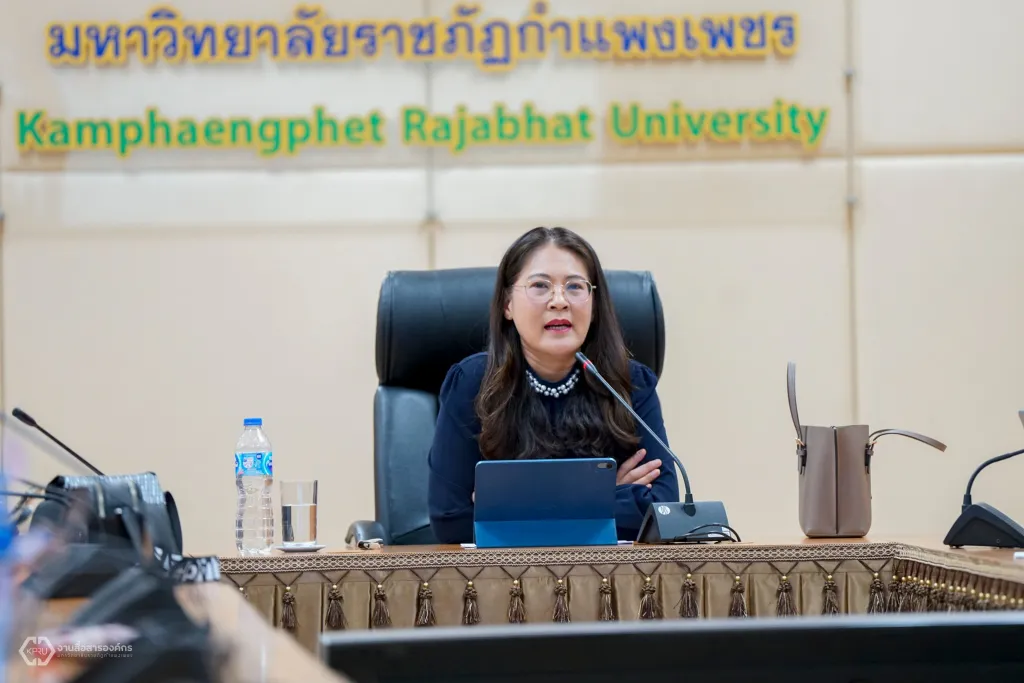 วันที่ 2 พฤษภาคม 2568 สำนักบริการวิชาการและจัดหารายได้ จัดการประชุมเพื่อรับทราบแนวทางการติดตามการประเมินผลตอบแทนทางสังคม (SROI) โดยมีผู้ช่วยศาสตราจารย์ ดร.ปรียานุช พรหมภาสิต อธิการบดี เป็นประธานในการประชุม ณ ห้องประชุมรวงผึ้ง ชั้น 8 อาคารเรียนรวมและอำนวยการ (อาคาร 14) มหาวิทยาลัยราชภัฏกำแพงเพชร