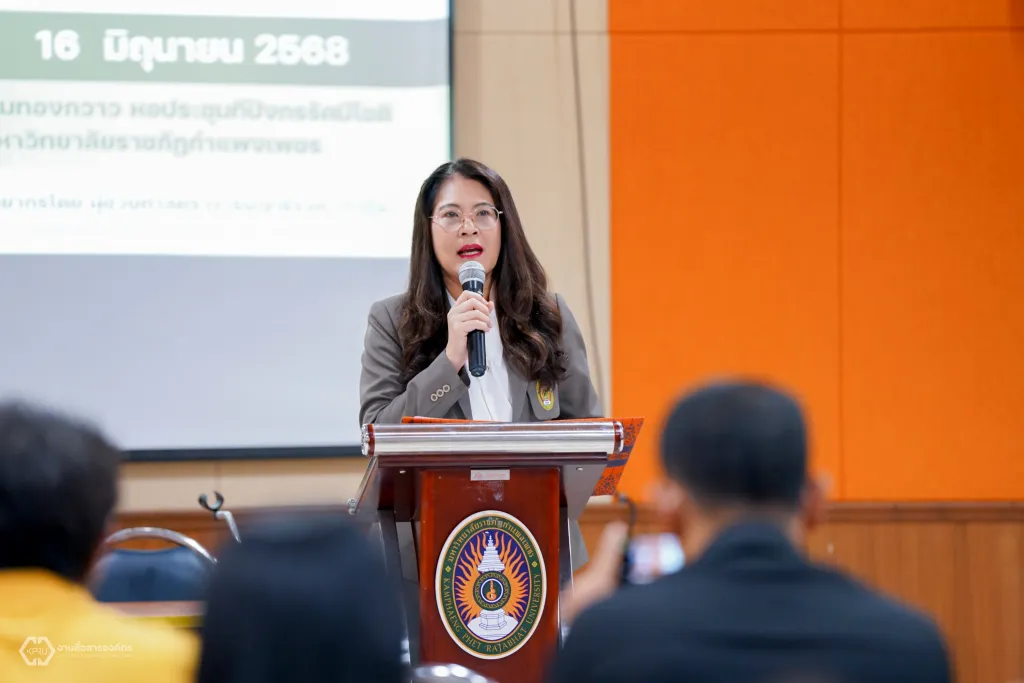 วันที่ 16 มิถุนายน 2568 ผู้ช่วยศาสตราจารย์ ดร.ปรียานุช พรหมภาสิต อธิการบดี เป็นประธานในพิธีเปิดโครงการอบรมเชิงปฏิบัติการการใช้งานแพลตฟอร์มออนไลน์ Low Carbon City Platform เพื่อประเมินคาร์บอนฟุตพริ้นท์ (CFO) ขององค์กรปกครองส่วนท้องถิ่น จัดโดยสำนักบริการวิชาการและจัดหารายได้ ณ ห้องประชุมทองกวาว ชั้น 2 อาคารทีปังกรรัศมีโชติ มหาวิทยาลัยราชภัฏกำแพงเพชร