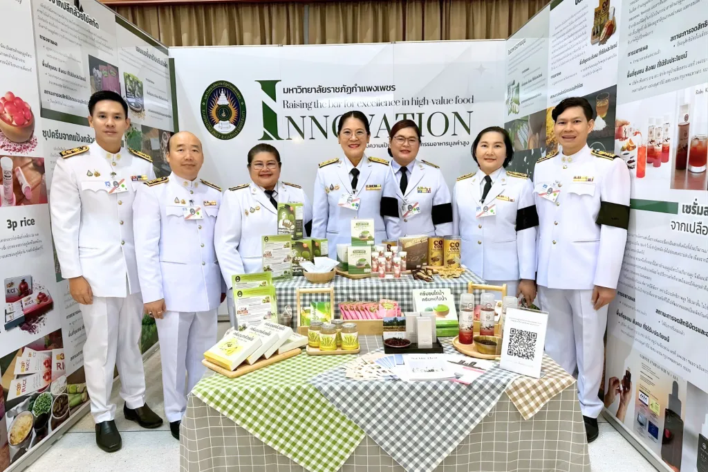 ในการนี้ มหาวิทยาลัยราชภัฏกำแพงเพชร นำโดยผู้ช่วยศาสตราจารย์ ดร.ปรียานุช พรหมภาสิต อธิการบดี ผู้ช่วยศาสตราจารย์ ดร. ชญาดา กลิ่นจันทร์ รองอธิการบดีฝ่ายวิจัยและบริการวิชาการ พร้อมด้วย ผู้ช่วยศาสตราจารย์ ดร.เสาวลักษณ์ ยอดวิญญูวงศ์ ผู้อำนวยการสถาบันวิจัยและพัฒนา รองผู้อำนวยการสถาบันวิจัยและพัฒนา นักวิจัยที่เข้าร่วมนำเสนอผลงาน นักวิจัยดีเด่น นักวิจัยชุมชนดีเด่น และเจ้าหน้าที่สถาบันวิจัยและพัฒนา เข้าร่วมงานและนำผลงานวิจัยและนวัตกรรมไปจัดแสดงนิทรรศการจำนวน 2 โซนดังนี้