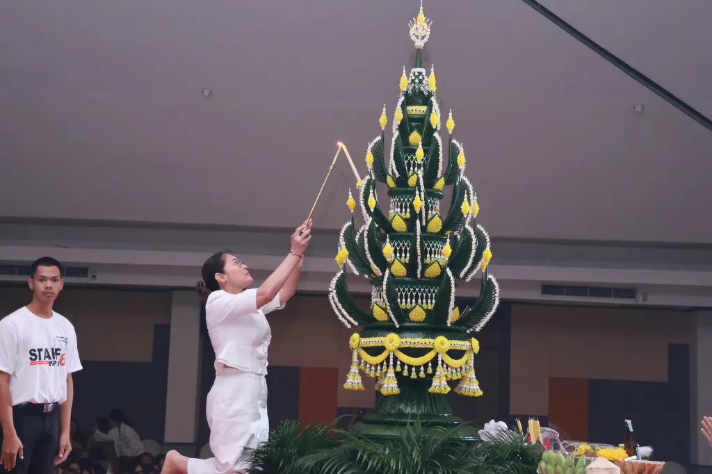 เมื่อวันที่ 26 พฤษภาคม 2568 เวลา 18.00 น. ที่อาคารทีปังกรรัศมีโชติ มหาวิทยาลัยราชภัฏกำแพงเพชร จัดกิจกรรมปฐมนิเทศนักศึกษาใหม่ ประจำปีการศึกษา 2568 พิธีบายศรีสู่ขวัญ "บายศรีสู่ขวัญสานสัมพันธ์สักทองคล้องใจ" โดยมี ผศ.ดร.ปรียานุช พรหมภาสิต อธิการบดี เป็นประธานในพิธี พร้อมด้วยคณะผู้บริหาร อาจารย์ บุคลากร และนักศึกษาชั้นปีที่ 1 เข้าร่วมพิธี