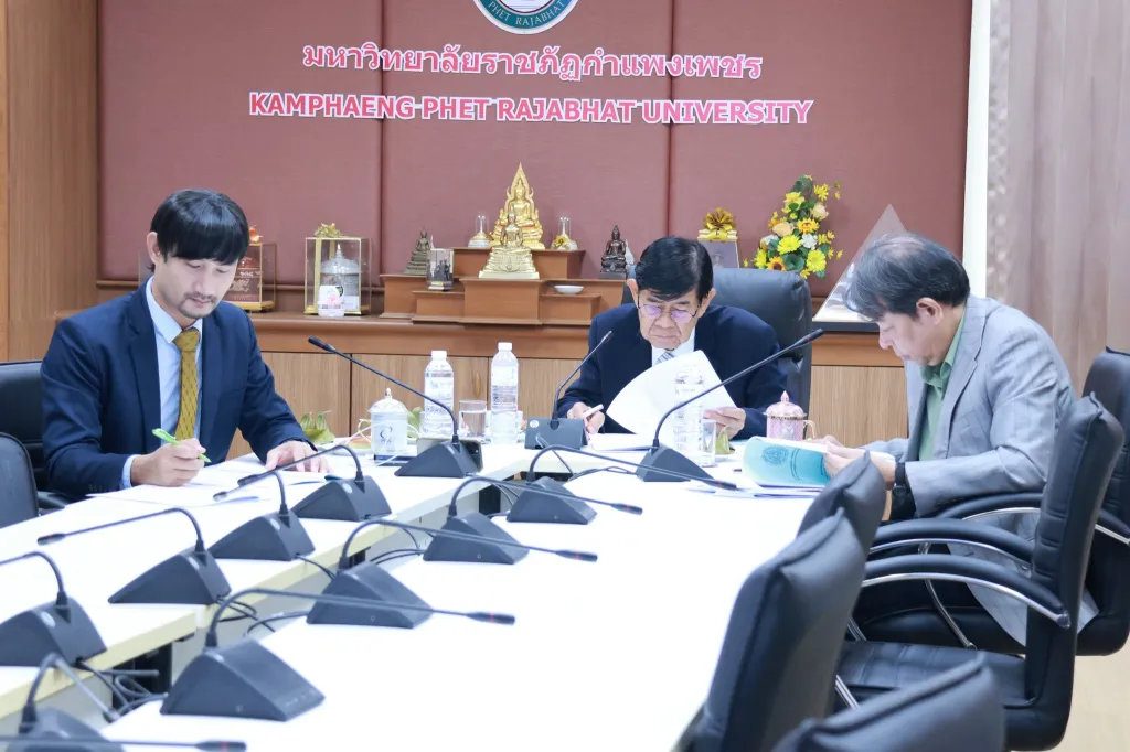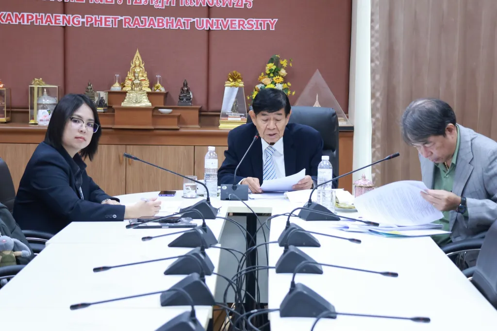 วันที่ 12 มีนาคม 2568 ที่ห้องประชุมดารารัตน์ ชั้น 4 อาคารเรียนรวมและอำนวยการ (อาคาร 14) มหาวิทยาลัยราชภัฏกำแพงเพชร ผู้ช่วยศาสตราจารย์ (พิเศษ) ดร. สมพร จองคำ กรรมการสภามหาวิทยาลัยผู้ทรงคุณวุฒิ ประธานคณะกรรมการสรรหาผู้อำนวยการฯ เป็นประธานในการนำเสนอวิสัยทัศน์และยุทธศาสตร์การพัฒนาของผู้เข้ารับการสรรหาให้ดำรงตำแหน่งผู้อำนวยการสำนักส่งเสริมวิชาการและงานทะเบียน ผู้อำนวยการสำนักศิลปะและวัฒนธรรม และผู้อำนวยการสำนักวิทยบริการและเทคโนโลยีสารสนเทศ และถ่ายทอดสดผ่านระบบออนไลน์