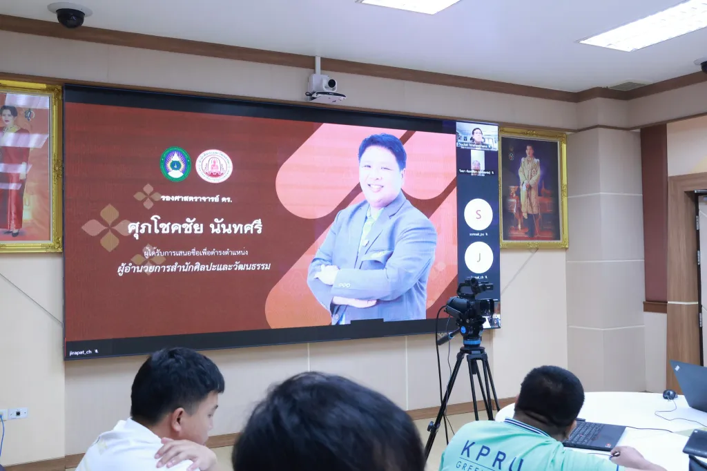 การแสดงวิสัยทัศน์และยุทธศาสตร์การพัฒนาของผู้เข้ารับการสรรหาให้ดำรงตำแหน่งผู้อำนวยการฯ ที่ห้องประชุมดารารัตน์ ชั้น 4 อาคารเรียนรวมและอำนวยการ (อาคาร 14) มหาวิทยาลัยราชภัฏกำแพงเพชร