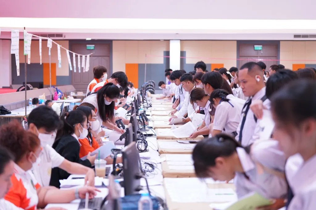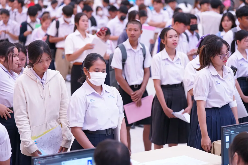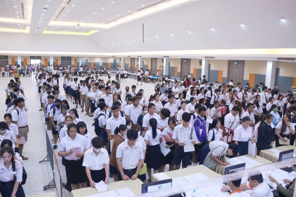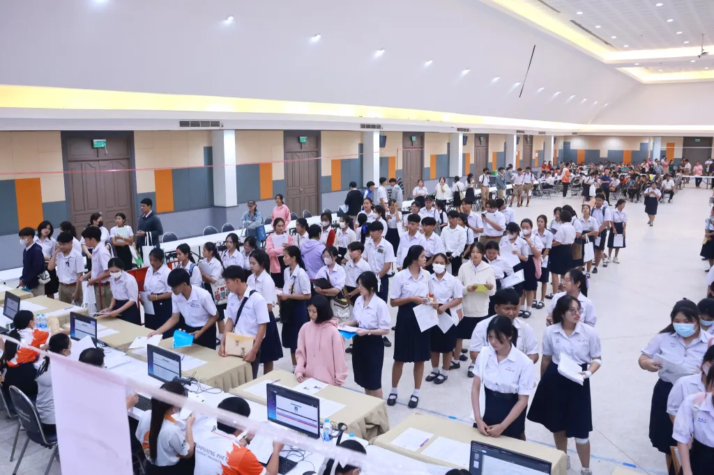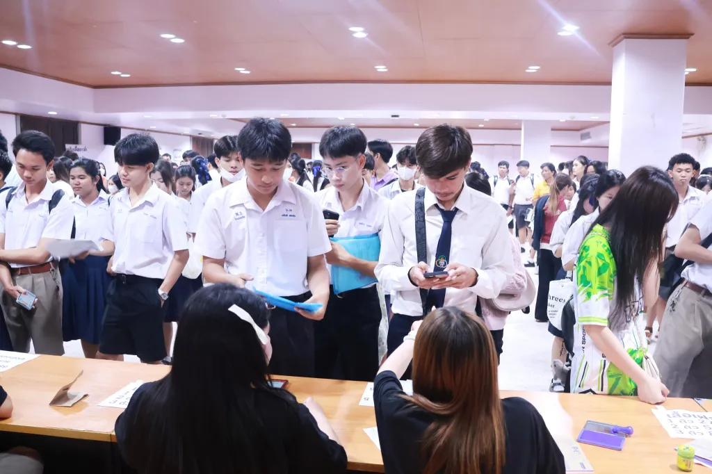 บรรยากาศการรายงานตัวนักศึกษาใหม่ ประจำปีการศึกษา 2568โดยมีผู้ช่วยศาสตราจารย์ ดร.ปรียานุช พรหมภาสิต อธิการบดี ผู้ช่วยศาสตราจารย์ ดร.ชญาดา กลิ่นจันทร์ รองอธิการบดี พร้อมด้วยผู้บริหาร อาจารย์ บุคลากร ร่วมให้การต้อนรับนักศึกษาใหม่
