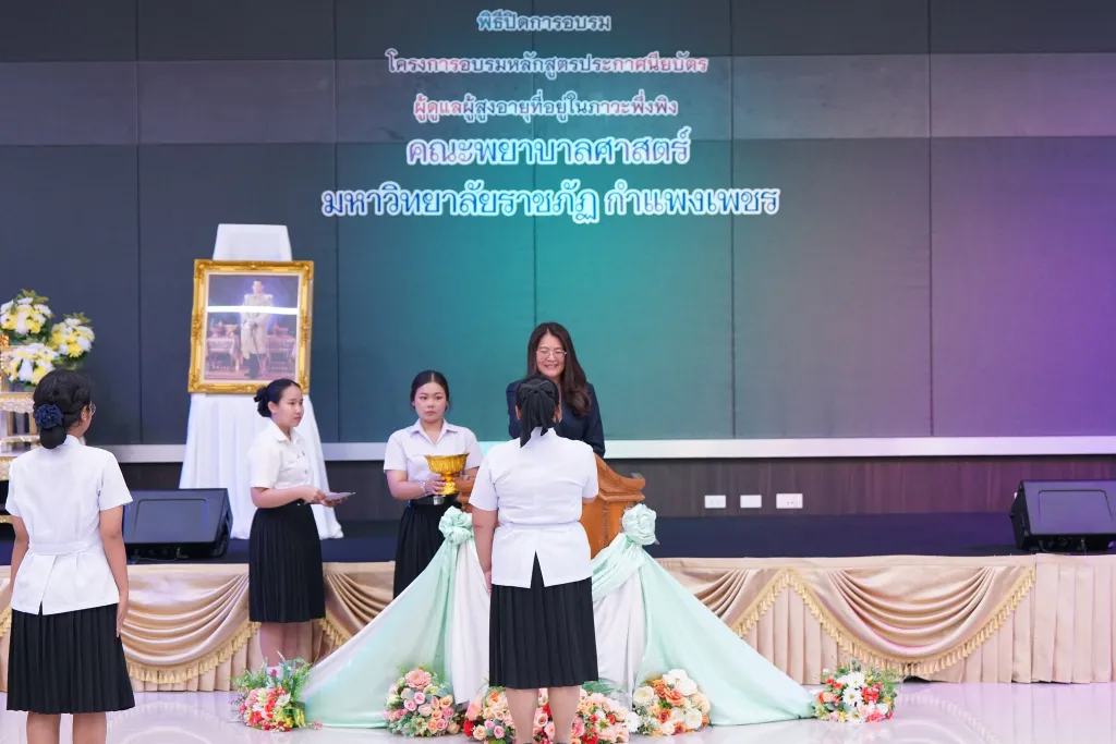 คณะพยาบาลศาสตร์ มหาวิทยาลัยราชภัฏกำแพงเพชร จัดพิธีมอบประกาศนียบัตรผู้ดูแลผู้สูงอายุที่อยู่ในภาวะพึ่งพิง ประจำปี พ.ศ. 2568