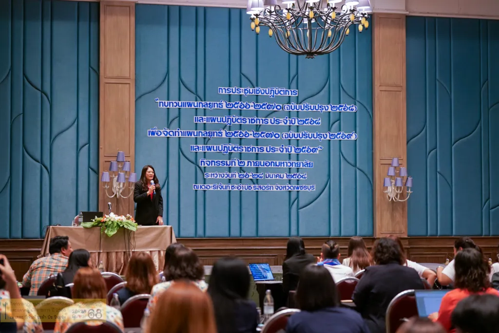 วันที่ 27 มีนาคม 2568 ผู้ช่วยศาสตราจารย์ ดร.ปรียานุช พรหมภาสิต อธิการบดี เป็นประธานในพิธีเปิดการประชุมเชิงปฏิบัติการ “ทบทวนแผนกลยุทธ์ 2566 - 2570 (ฉบับปรับปรุง 2568) และแผนปฏิบัติราชการ ประจำปี 2568 เพื่อจัดทำแผนกลยุทธ์ 2566 - 2570 (ฉบับปรับปรุง 2569) และแผนปฏิบัติราชการ ประจำปี 2569” กิจกรรมที่ 2 โดยมีผู้บริหาร อาจารย์ และบุคลากรเข้าร่วม การประชุมเชิงปฏิบัติการดังกล่าวฯ ณ The Regent Cha Am Beach Resort อำเภอชะอำ จังหวัดเพชรบุรี