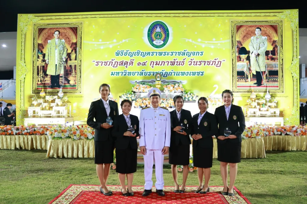 วันที่ 14 กุมภาพันธ์ 2568 มหาวิทยาลัยราชภัฏกำแพงเพชร โดยองค์การบริหารนักศึกษาภาคปกติ กองพัฒนานักศึกษา จัดพิธีอัญเชิญตราพระราชลัญจกร พิธีรำลึกวันราชภัฏ ประจำปี 2568 โดยมีผู้ช่วยศาสตราจารย์ ดร.ปรียานุช พรหมภาสิต อธิการบดี เป็นประธานในพิธี พร้อมด้วยคณะผู้บริหาร อาจารย์ เจ้าหน้าที่ และนักศึกษาฯ เข้าร่วมพิธีพร้อมเพรียงกัน ณ สนามกีฬากลางแจ้ง มหาวิทยาลัยราชภัฏกำแพงเพชร