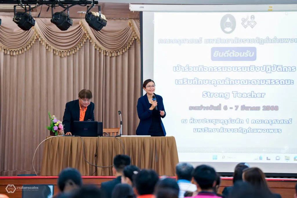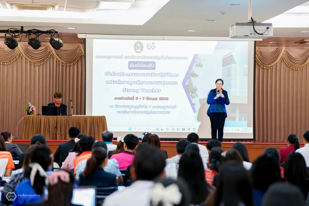 วันที่ 6 มีนาคม 2568 คณะครุศาสตร์ จัดกิจกรรมอบรมเชิงปฏิบัติการเสริมทักษะคุณลักษณะตามสมรรถนะ Strong Teacher ภายใต้โครงการพัฒนานวัตกรรมทางการศึกษาเพื่อพัฒนาท้องถิ่นโดยใช้สมรรถนะเป็นฐาน โดยมีรองศาสตราจารย์ ดร.บัณฑิต ฉัตรวิโรจน์ คณบดีคณะครุศาสตร์ เป็นประธานในพิธีเปิดโครงการฯ ระหว่างวันที่ 6 - 7 มีนาคม 2568 ณ อาคารคณะครุศาสตร์ มหาวิทยาลัยราชภัฏกำแพงเพชร
