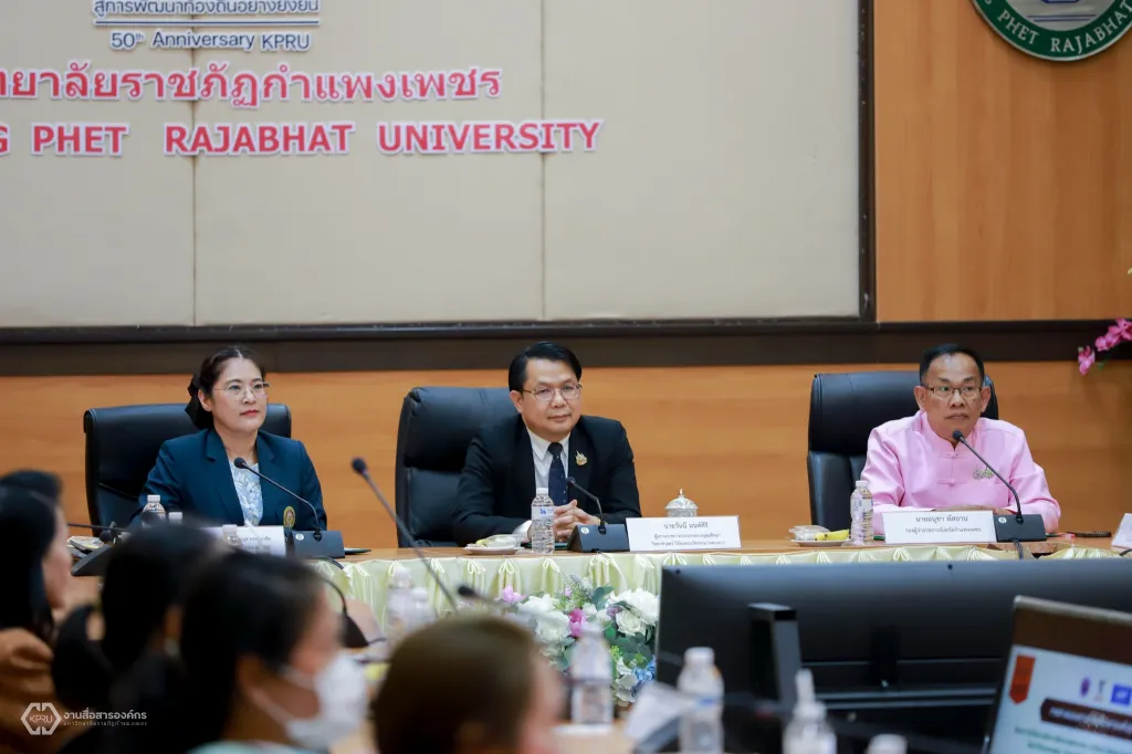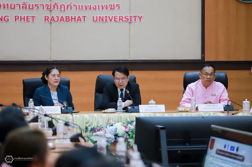 บนฐานทรัพยากรพื้นถิ่น เพื่อสร้างเศรษฐกิจฐานรากและเศรษฐกิจหมุนเวียนในพื้นที่” ประจำปีงบประมาณ 2567 โดยมีนายอนุชา พัสถาน รองผู้ว่าราชการจังหวัดกำแพงเพชร กล่าวต้อนรับ ผู้ช่วยศาสตราจารย์ ดร.ปรียานุช พรหมภาสิต อธิการบดีมหาวิทยาลัยราชภัฏกำแพงเพชร กล่าวรายงาน