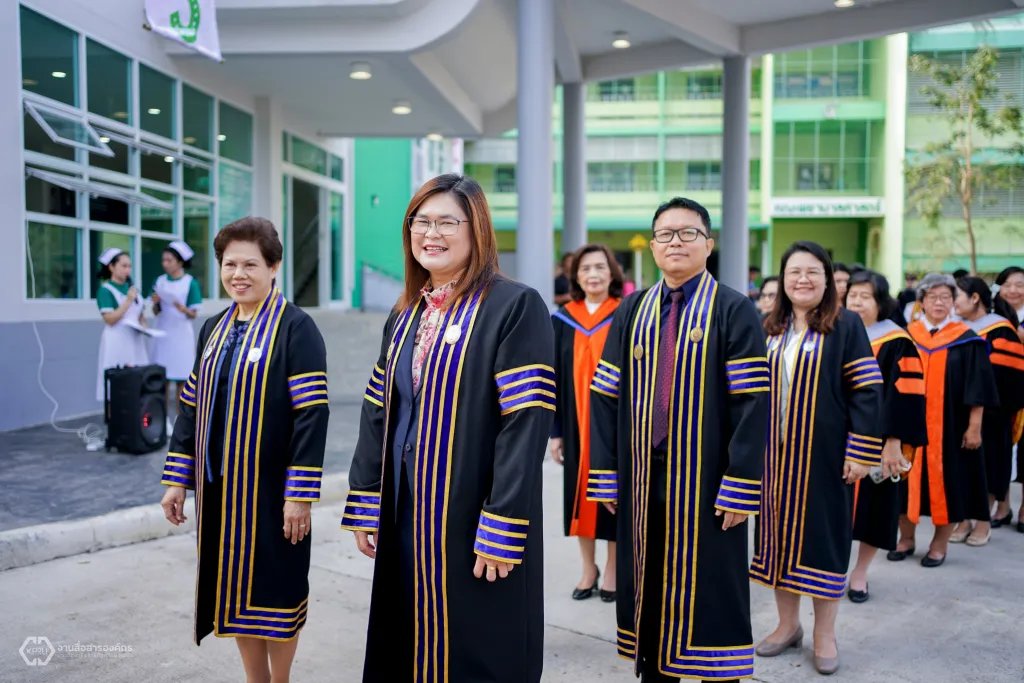 ผู้ช่วยศาสตราจารย์ ดร. สุภาเพ็ญ ปาณะวัฒนพิสุทธิ์ คณบดีคณะพยาบาลศาสตร์ กล่าวรายงานว่า พิธีสำเร็จการศึกษา เป็นวาระที่ทรงคุณค่าอย่างมาก ที่นักศึกษาพยาบาลศาสตร์ชั้นปีที่ 4 เป็นการสำเร็จการศึกษาในรุ่นที่ 2 ของคณะพยาบาลศาสตร์ มหาวิทยาลัยราชภัฎกำแพงเพชร ตลอดระยะเวลาของการศึกษาเล่าเรียนของนักศึกษาพยาบาล มีความมุ่งมั่นมีวินัย ความรับผิดชอบ และความพยายามที่นักศึกษาได้กระทำจนประสบความสำเร็จ การจัดงานครั้งนี้ได้แสดงให้เห็นว่าผู้สำเร็จการศึกษามีความรู้ และสามารถประกอบอาชีพพยาบาลในการดูแลสุขภาพประชาชน และพร้อมก้าวสู่การเป็นพยาบาลวิชาชีพอย่างสมบูรณ์ เกิดความภาคภูมิใจในศักดิ์ศรีและเกียรติภูมิของวิชาชีพการพยาบาล โดยปีการศึกษา 2567 มีนักศึกษาพยาบาลศาสตร์ ชั้นปีที่ 4 คณะพยาบาลศาสตร์ ที่เข้าพิธีสำเร็จการศึกษา จำนวนทั้งสิ้น 36 คน