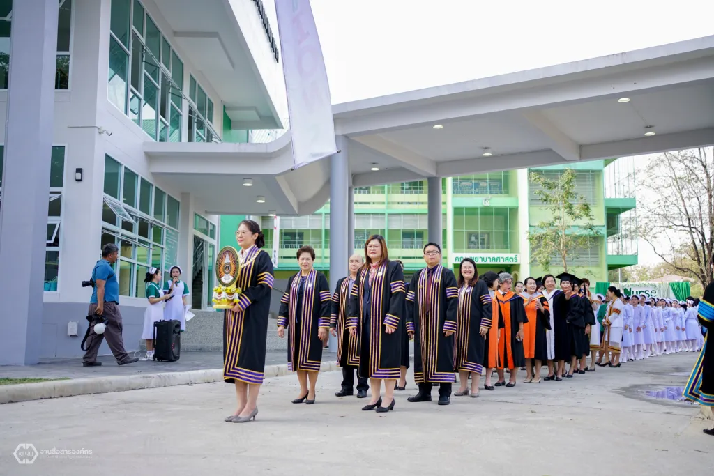 วันที่ 5 กุมภาพันธ์ 2568 คณะพยาบาลศาสตร์ มหาวิทยาลัยราชภัฏกำแพงเพชร จัดพิธีสำเร็จการศึกษา หลักสูตรพยาบาลศาสตรบัณฑิต ประจำปีการศึกษา 2567 โดยมีผู้ช่วยศาสตราจารย์ ดร.ปรียานุช พรหมภาสิต อธิการบดี เป็นประธานในพิธี กล่าวแสดงความยินดี ให้โอวาทและมอบใบรับรองการสำเร็จการศึกษา พร้อมด้วยคณะผู้บริหารมหาวิทยาลัย คณาจารย์คณะพยาบาศาสตร์ เข้าร่วมพิธีฯ ณ หอประชุมรัตนอาภา มหาวิทยาลัยราชภัฏกำแพงเพชร