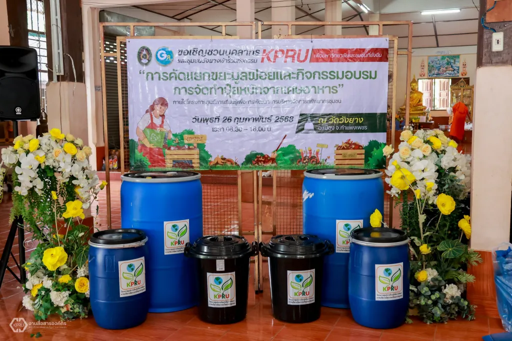 มรภ.กำแพงเพชร จัดกิจกรรมคัดแยกขยะมูลฝอยและกิจกรรมอบรมการจัดทำปุ๋ยหมักจากเศษอาหาร ณ วัดวังยาง อ.เมือง จ.กำแพงเพชร