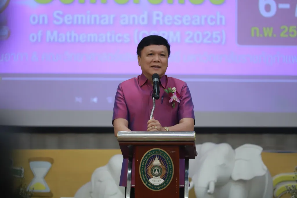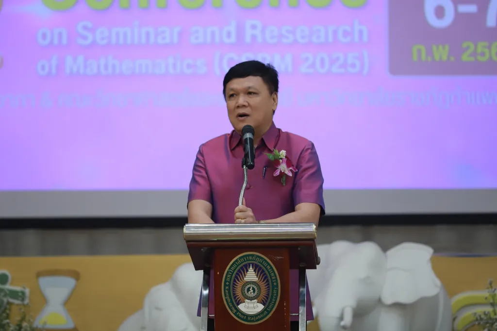 วันที่ 6 กุมภาพันธ์ 2568 ผศ.ดร.ปรียานุช พรหมภาสิต อธิการบดี เป็นประธานในพิธีเปิดการประชุมวิชาการทางคณิตศาสตร์ระดับชาติ ครั้งที่ 12 โครงการสัมมนาวิชาการและนำเสนอผลงานด้านคณิตศาสตร์และคณิตศาสตรศึกษา โดยมีรองอธิการบดี ผู้บริหารมหาวิทยาลัย คณบดีคณะครุศาสตร์ คณบดีคณะวิทยาศาสตร์และเทคโนโลยี ศ.ดร.สมยศ พลับเที่ยง ที่ปรึกษาโครงการ CSRM ศ.ดร.นรินทร์ เพชร์โรจน์ คณาจารย์มหาวิทยาลัยราชภัฏกำแพงเพชร ตลอดจนมหาวิทยาลัยเครือข่าย ครูผู้สอนคณิตศาสตร์ และนักศึกษา เข้าร่วมพิธีเปิดการประชุมวิชาการทางคณิตศาสตร์ระดับชาติ ครั้งที่ 12 ณ หอประชุมรัตนอาภา มหาวิทยาลัยราชภัฏกำแพงเพชร