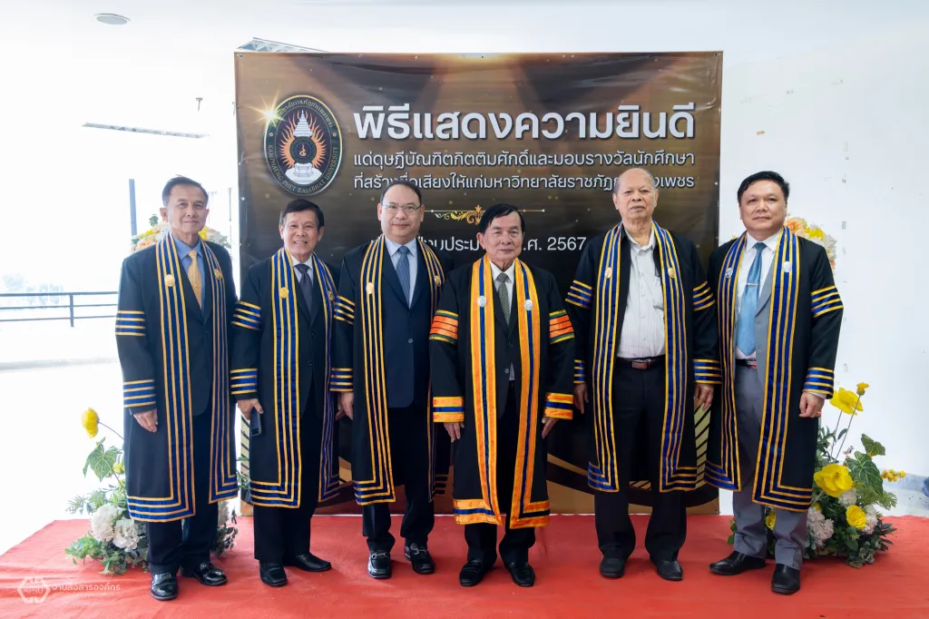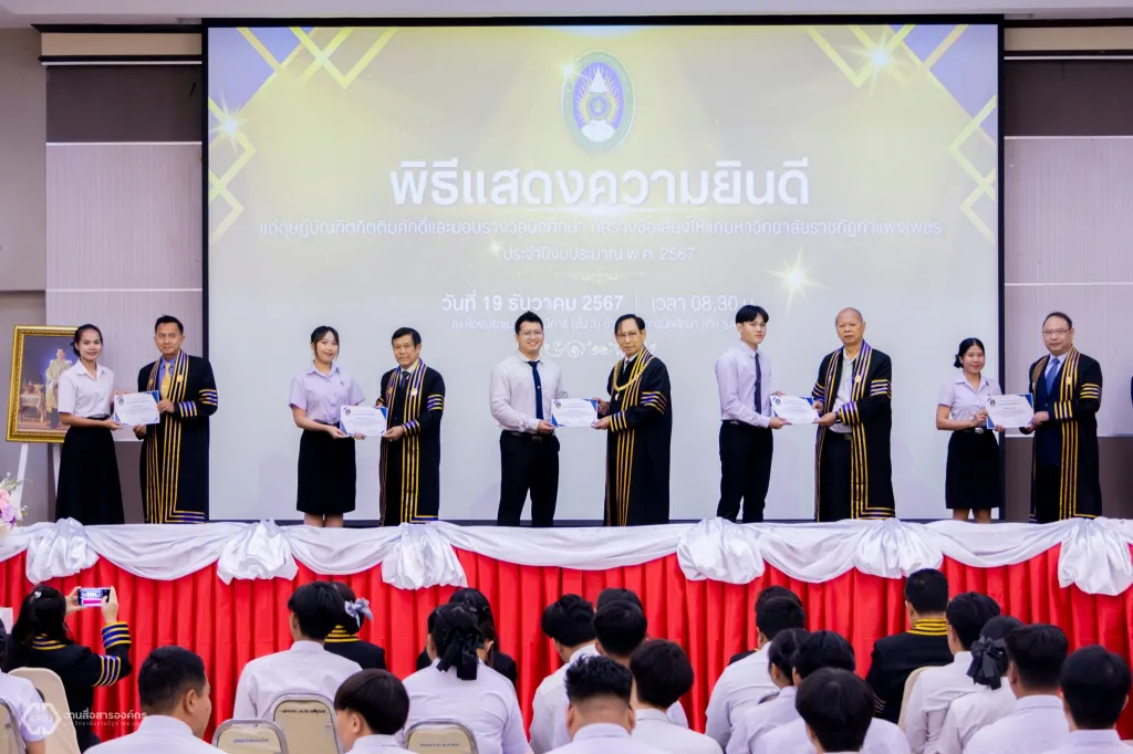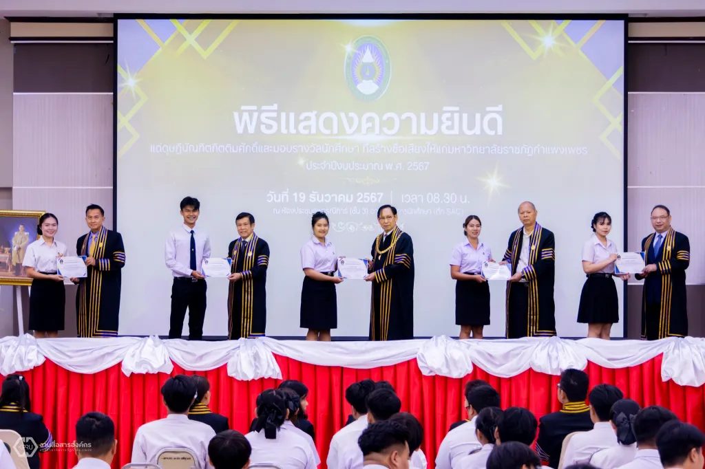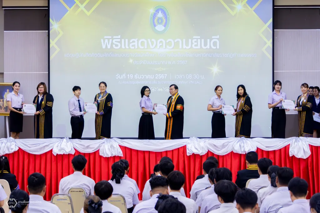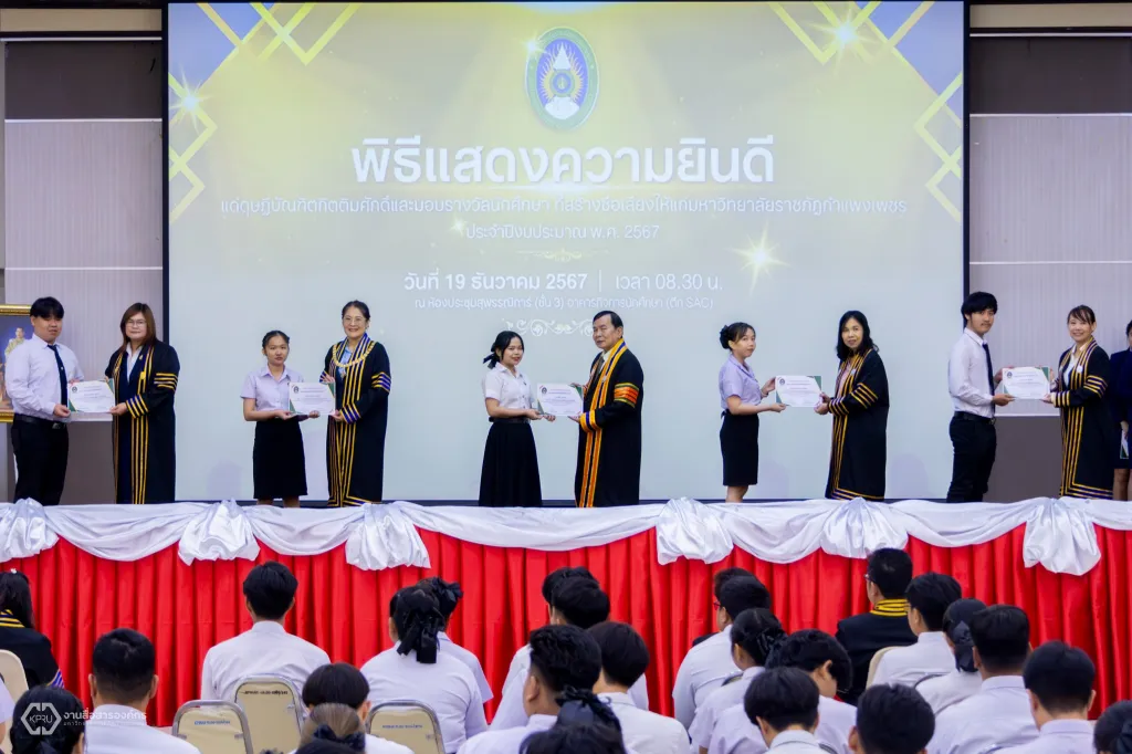 ม.ราชภัฏกำแพงเพชร จัดพิธีแสดงความยินดีแด่ดุษฎีบัณฑิตกิตติมศักดิ์ และพิธีมอบประกาศนียบัตรรางวัลนักศึกษาที่สร้างชื่อเสียงให้แก่มหาวิทยาลัย ประจำปีงบประมาณ พ.ศ. 2567