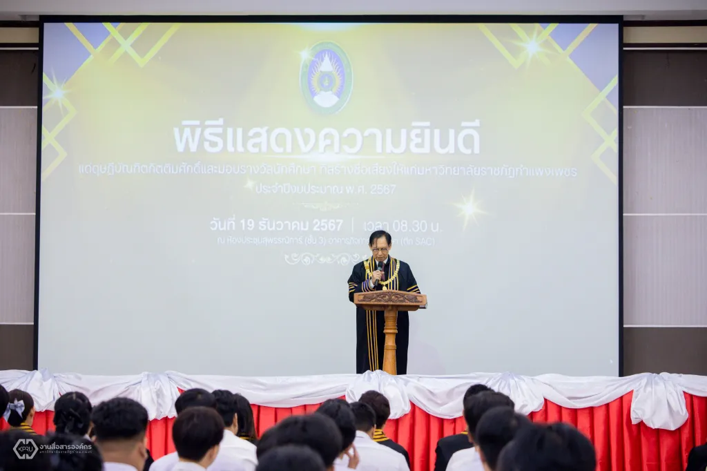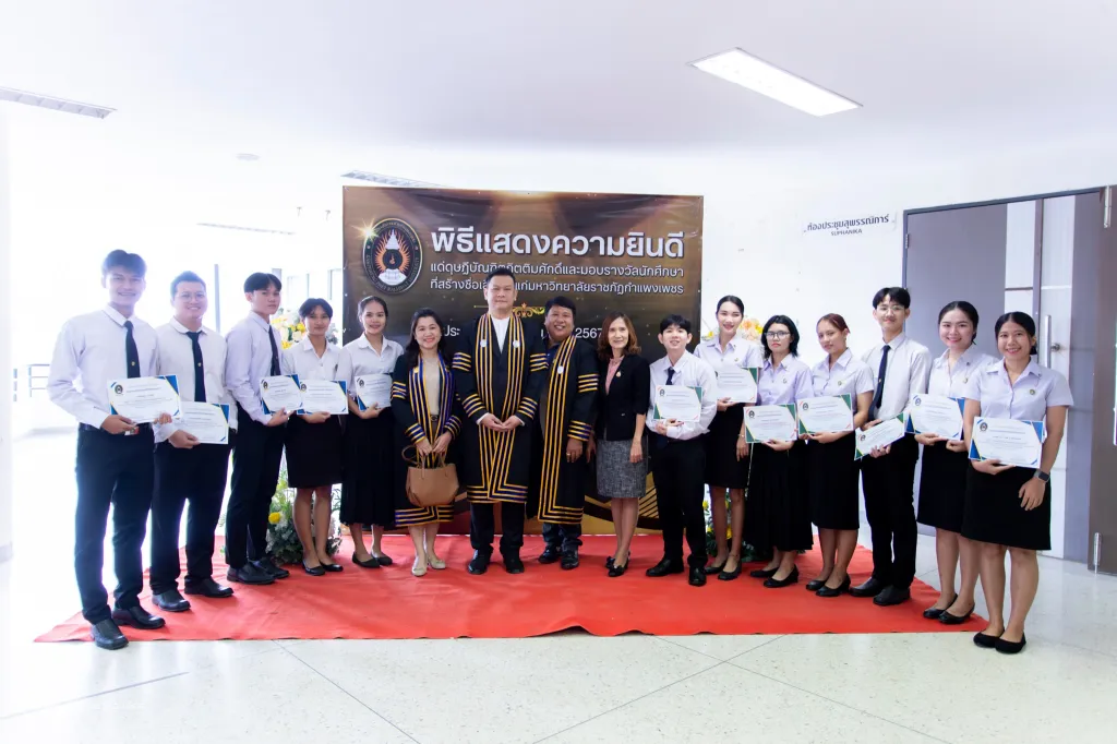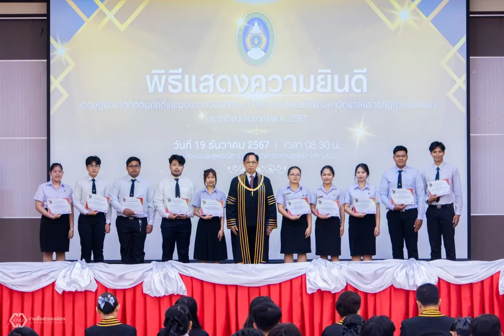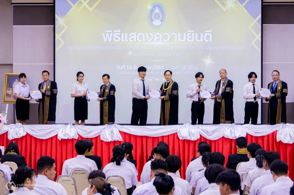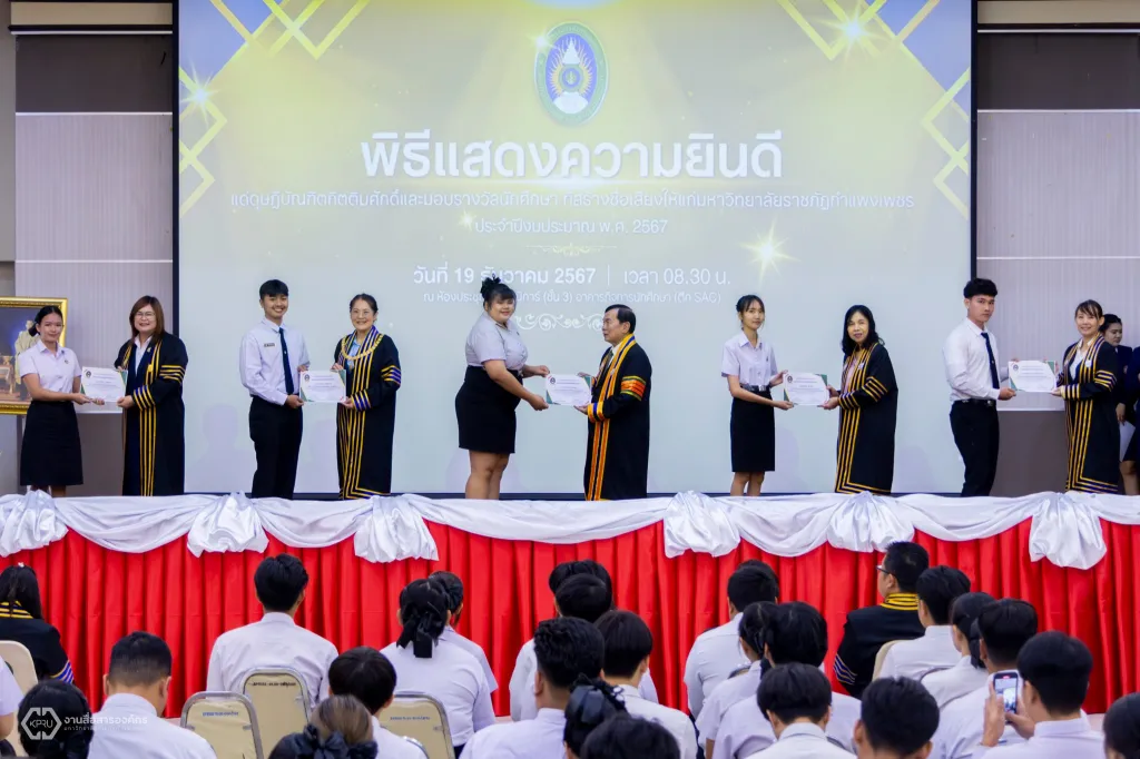 ม.ราชภัฏกำแพงเพชร จัดพิธีแสดงความยินดีแด่ดุษฎีบัณฑิตกิตติมศักดิ์ และพิธีมอบประกาศนียบัตรรางวัลนักศึกษาที่สร้างชื่อเสียงให้แก่มหาวิทยาลัย ประจำปีงบประมาณ พ.ศ. 2567
