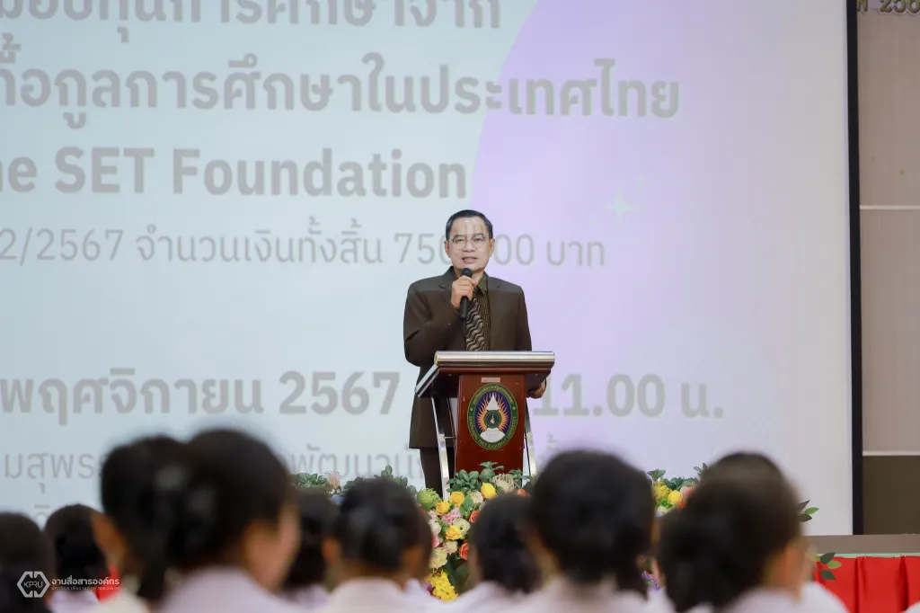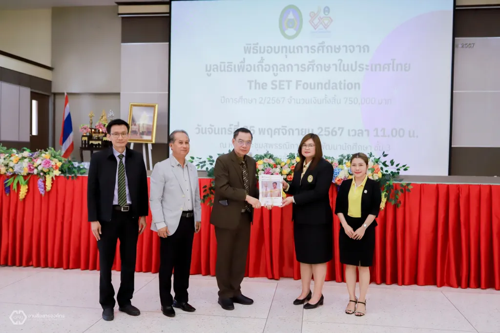 โอกาสนี้ ผู้ช่วยศาสตราจารย์ ดร.ชญาดา กลิ่นจันทร์ รองอธิการบดีฝ่ายวิจัยและกิจการนักศึกษา และศิลปวัฒนธรรม กล่าวต้อนรับและแสดงความขอบคุณ มูลนิธิเพื่อเกื้อกูลการศึกษาในประเทศไทย โดยผู้ช่วยศาสตราจารย์ ดร.ทีปพิพัฒน์ สันตะวัน กรรมการและเหรัญยิก คุณนเรศ หมื่นรอด ผู้อำนวยการ และรองศาสตราจารย์ ดร.ธานี เกศทอง