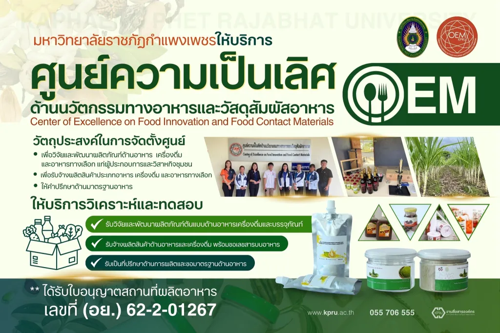 ศูนย์ความเป็นเลิศด้านนวัตกรรมทางอาหารและวัสดุสัมผัสอาหาร (OEM) พิธีเปิดศูนย์การเรียนรู้ตลอดชีวิตและพัฒนามาตรฐานวิชาชีพ (ศูนย์LPC) เมื่อวันพุธที่ 29 มกราคม 2568 นอกจากการเปิดตัวศูนย์การเรียนรู้ตลอดชีวิตและพัฒนามาตรฐานอาชีพ (KPRU LPC)
