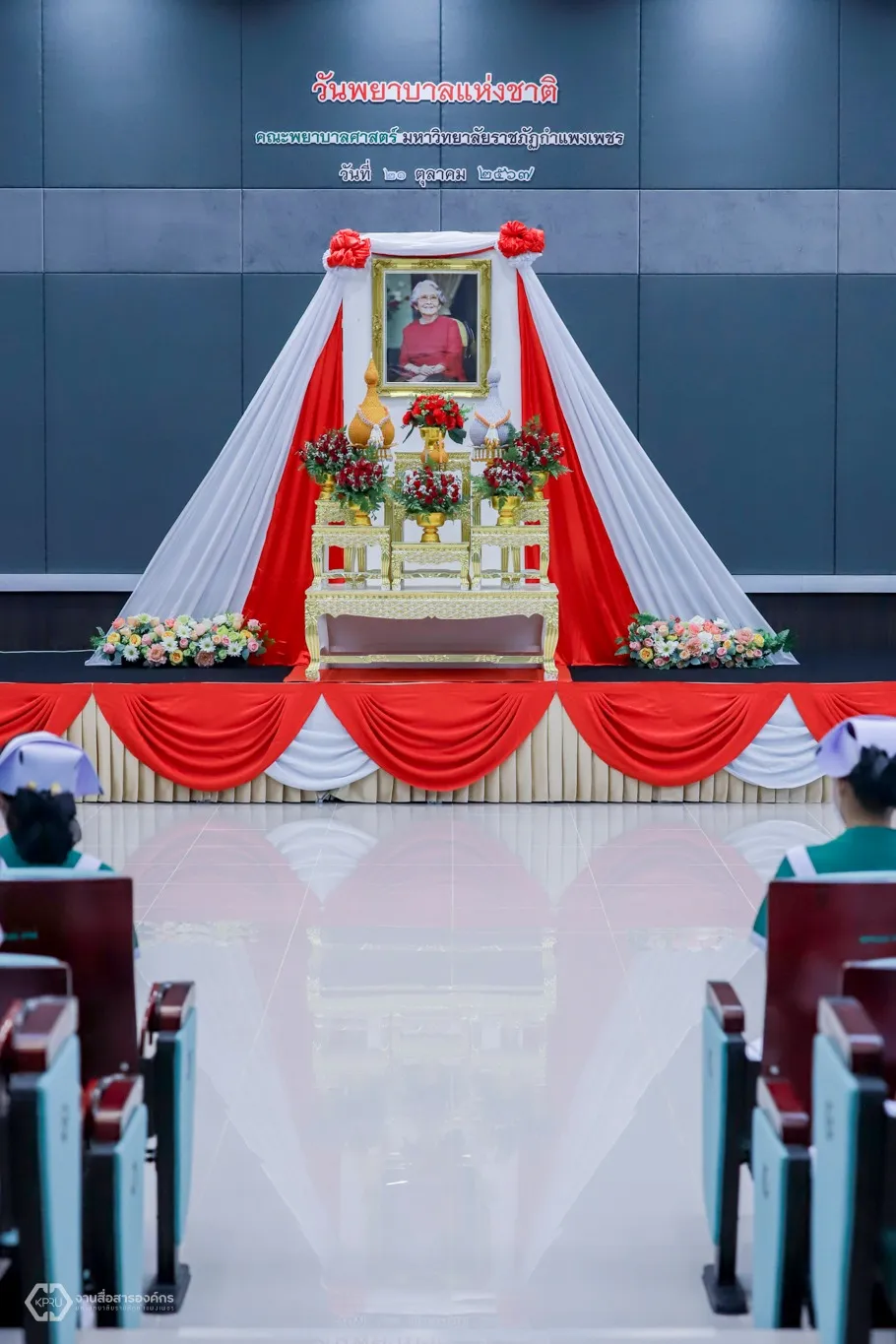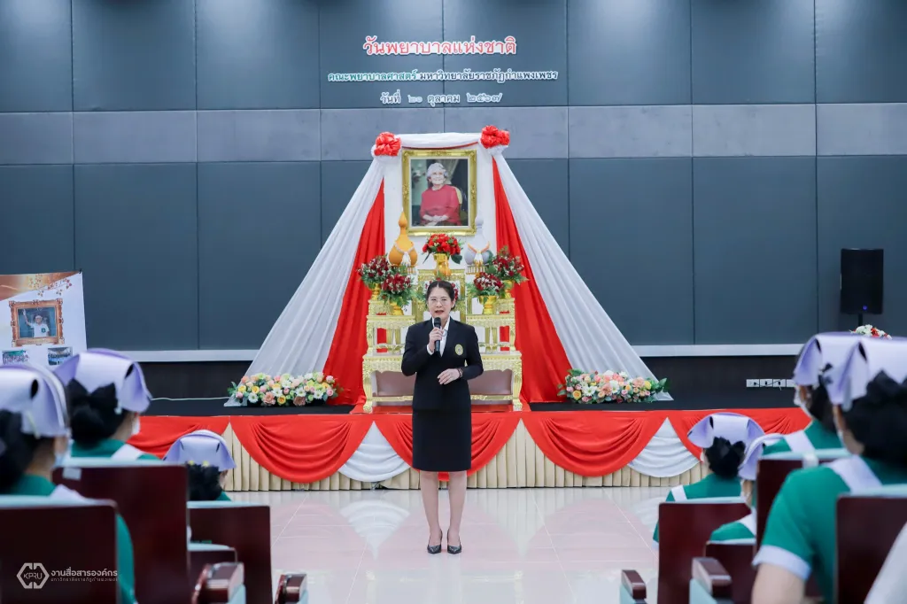 วันที่ 21 ตุลาคม 2567 ผู้ช่วยศาสตราจารย์ ดร.ปรียานุช พรหมภาสิต อธิการบดี เป็นประธานในพิธี "วันพยาบาลแห่งชาติ" ประจำปี 2567 พร้อมด้วยผู้ช่วยศาสตราจารย์ ดร.ชญาดา กลิ่นจันทร์ รองอธิการบดี ผู้ช่วยศาสตราจารย์ ดร.ตรรกพร สุขเกษม ผู้ช่วยอธิการบดี ผู้ช่วยศาสตราจารย์ ดร.สุภาเพ็ญ ปาณะวัฒนพิสุทธิ์ คณบดีคณะพยาบาลศาสตร์ คณาจารย์ และนักศึกษาพยาบาลศาสตร์ เข้าร่วมกิจกรรม ณ ห้องประชุมศูนย์ปฏิบัติการพยาบาล คณะพยาบาลศาสตร์ มหาวิทยาลัยราชภัฏกำแพงเพชร