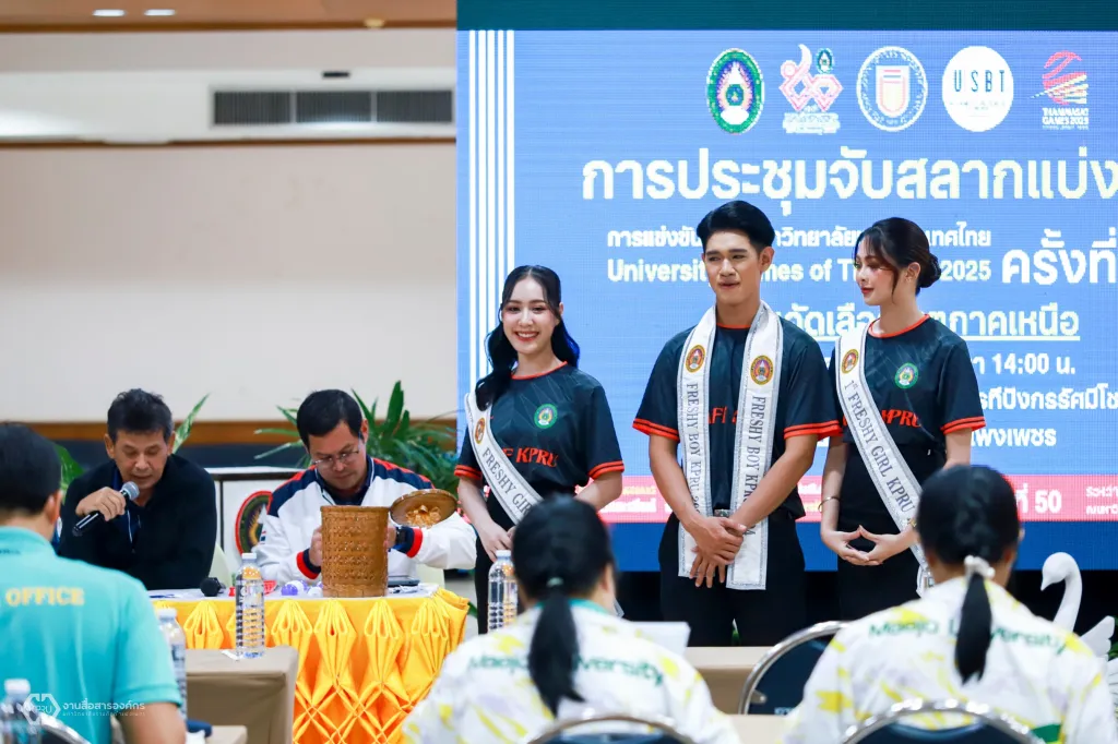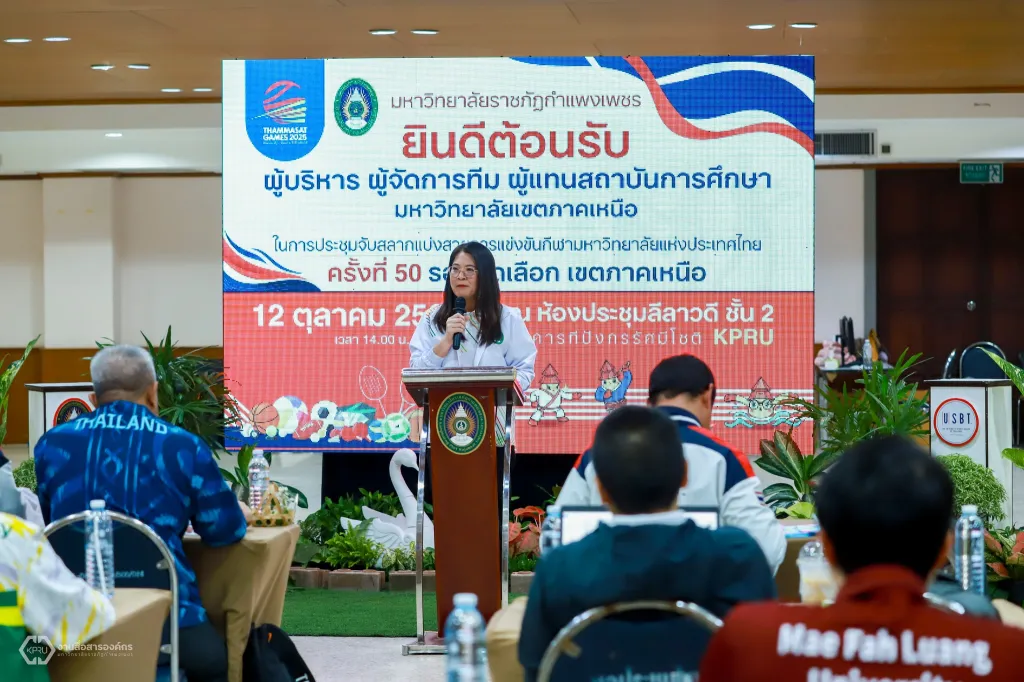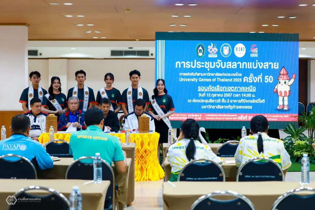 วันที่ 12 ตุลาคม 2567 มหาวิทยาลัยราชภัฏกำแพงเพชร จัดการประชุมจับสลากแบ่งสายการแข่งขันมหาวิทยาลัยแห่งประเทศไทย ครั้งที่ 50 รอบคัดเลือก เขตภาคเหนือ โดยมีผู้ช่วยศาสตราจารย์ ดร.ปรียานุช พรหมภาสิต อธิการบดี กล่าวต้อนรับผู้บริหาร ผู้จัดการทีม ผู้แทนสถาบันการศึกษามหาวิทยาลัยเขตภาคเหนือ ณ ห้องประชุมลีลาวดี ชั้น 2 อาคารทีปังกรรัศมีโชติ