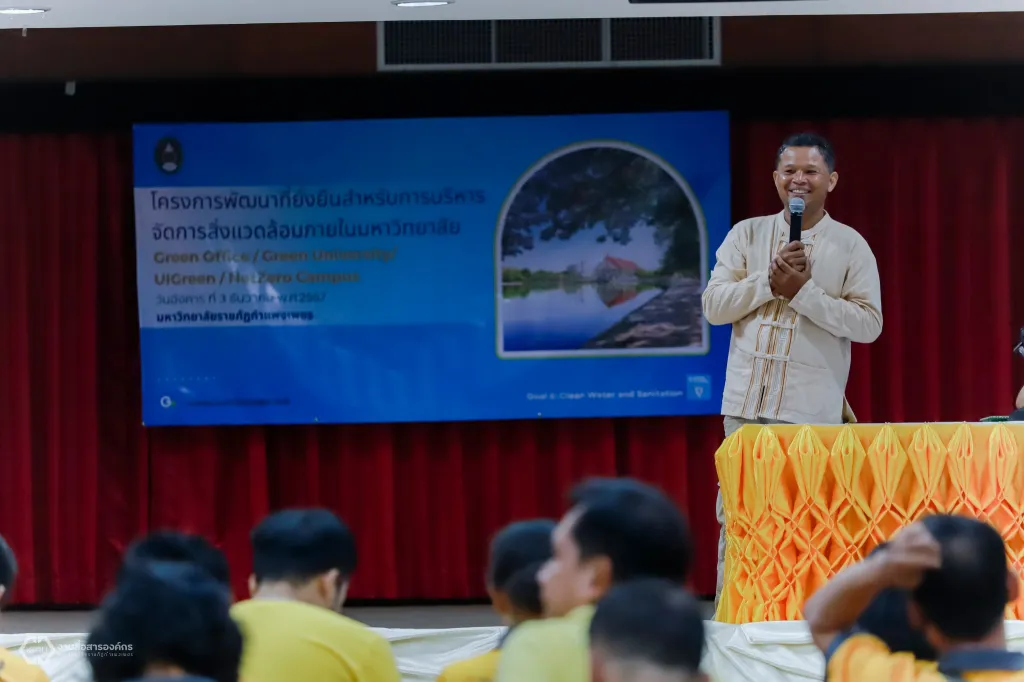 มหาวิทยาลัยราชภัฏกำแพงเพชร มีความมุ่งมั่นการเป็นมหาวิทยาลัยแห่งความยั่งยืน ขับเคลื่อนมหาวิทยาลัยสู่ความเป็นกลางทางคาร์บอน ส่งเสริมระบบการบริหารจัดการสิ่งแวดล้อม โดยคำนึงถึงการพัฒนาระบบนิเวศและความหลากหลายทางชีวภาพ รวมถึงสื่อสารนโยบายการบริหารจัดการสิ่งแวดล้อม เป้าหมาย และแนวทางการดำเนินงาน โดยเน้นการมีส่วนร่วมจากทุกภาคส่วนในมหาวิทยาลัยฯ อีกทั้ง ปีที่ผ่านมา การดำเนินงานด้านการอนุรักษ์น้ำ มหาวิทยาลัยฯ ได้รับการจัดอันดับจากสถาบันจัดอันดับโลก ด้านการจัดการทรัพยากรน้ำ อันดับที่ 3 ของกลุ่มมหาวิทยาลัยราชภัฏ อันดับที่ 20 ของประเทศ อันดับที่ 601 – 800 ของโลก ประกอบกับการอนุรักษ์น้ำจำเป็นต้องมีการสร้างความตระหนักรู้ในเรื่องของการประหยัดน้ำ การนำน้ำกลับมาหมุนเวียนใช้ให้เกิดประโยชน์ต่าง ๆ ต่อไป
