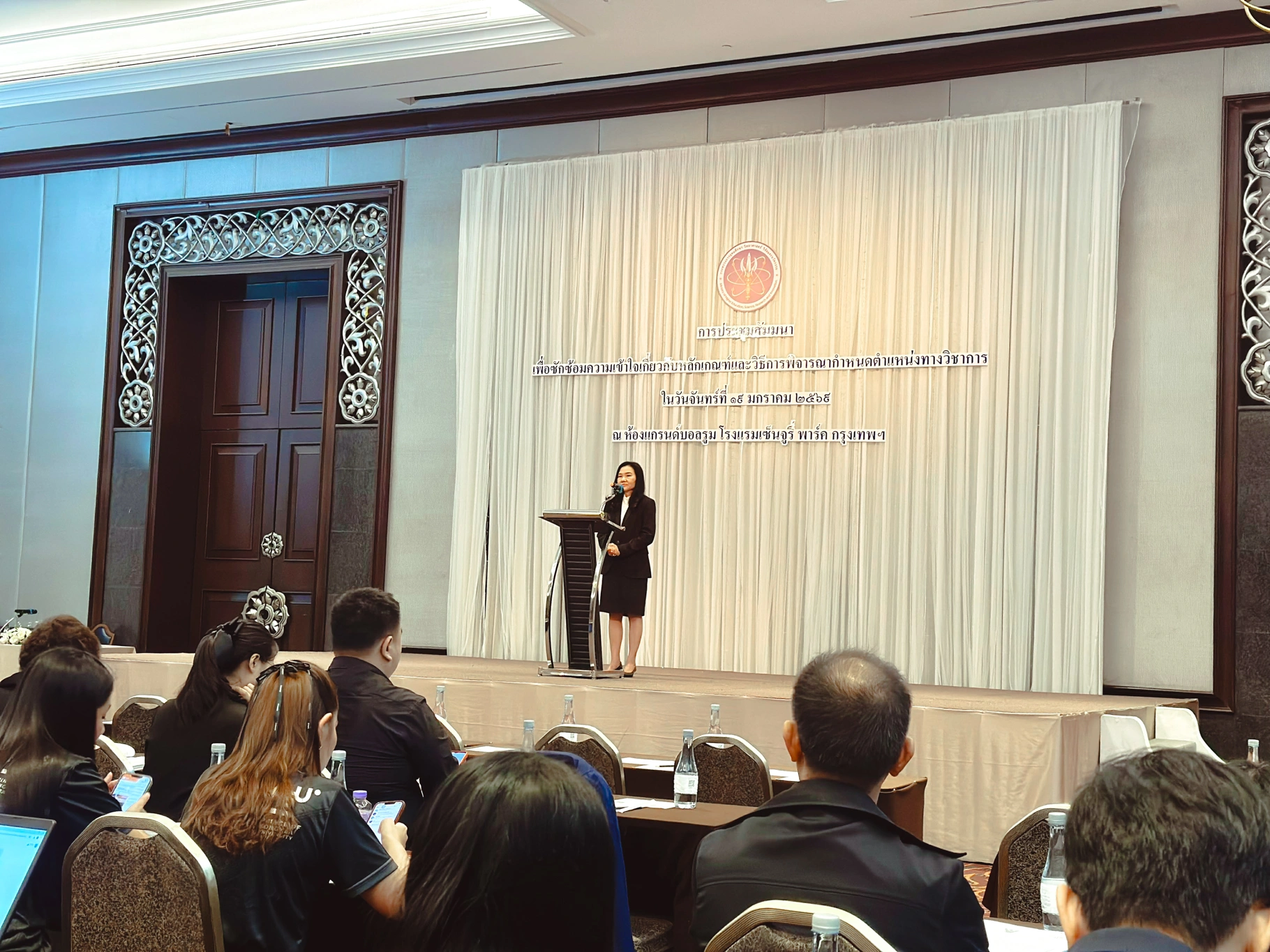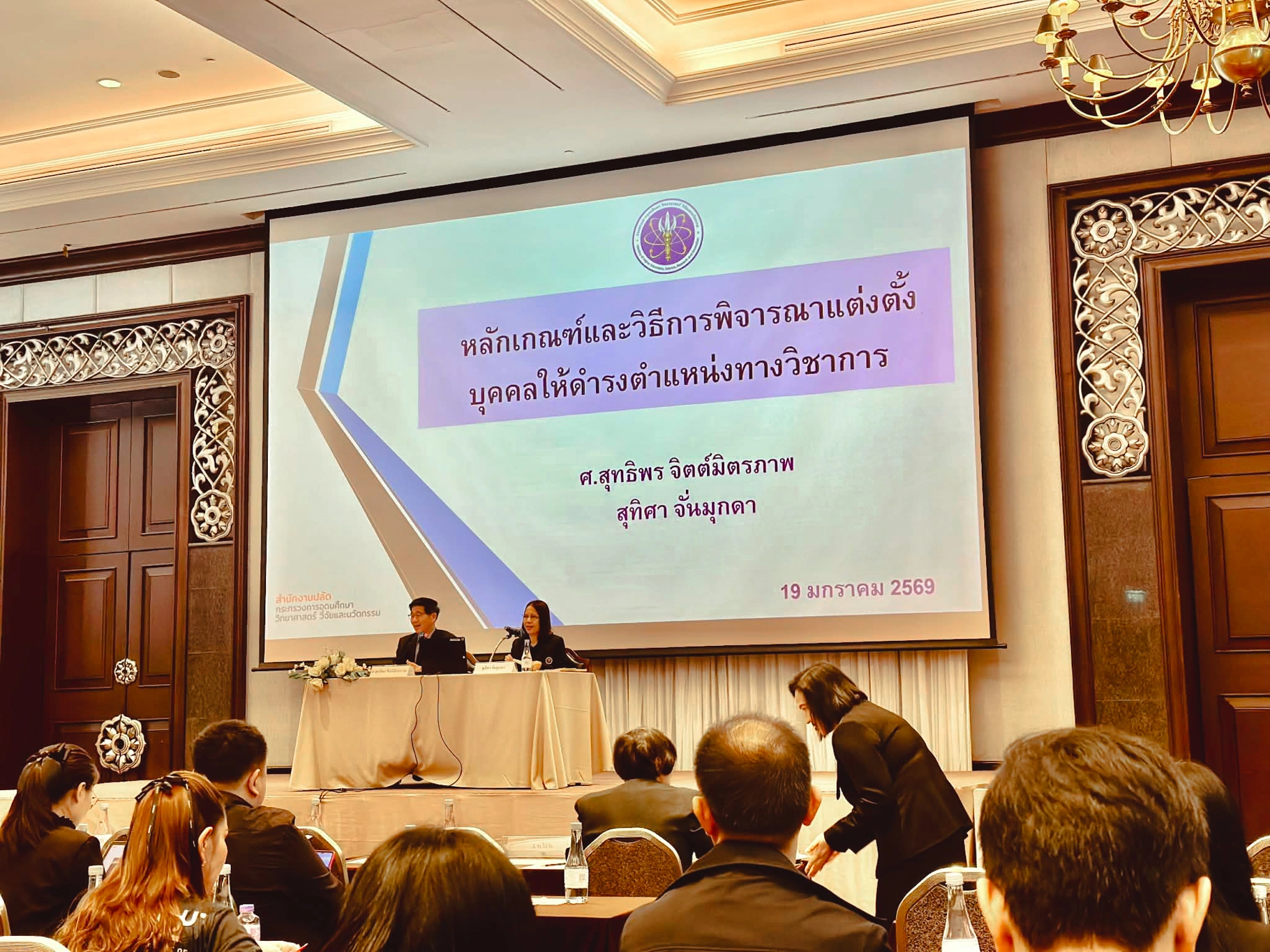 วันที่ 19 มกราคม 2569 ผู้ช่วยศาสตราจารย์ ดร.ชญาดา กลิ่นจันทร์ รองอธิการบดีฝ่ายวิจัยและบริการวิชาการ ปฏิบัติหน้าที่เลขานุการตำแหน่งทางวิชาการ มหาวิทยาลัยราชภัฏกำแพงเพชร และงานบริหารทรัพยากรบุคคลและนิติการ เข้าร่วมการประชุมสัมมนาเพื่อซักซ้อมความเข้าใจเกี่ยวกับหลักเกณฑ์และวิธีการพิจารณาแต่งตั้งบุคคลให้ดำรงตำแหน่งทางวิชาการ รุ่นที่ 3 (สำหรับเจ้าหน้าที่สถาบันอุดมศึกษาของรัฐ) ณ ห้องแกรนด์บอลรูม โรงแรมเซ็นจูรี่ พาร์ค กรุงเทพฯ