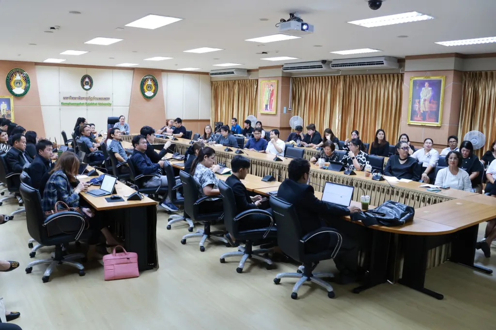 วันที่ 12 พฤศจิกายน 2568 สำนักส่งเสริมวิชาการและงานทะเบียน จัดประชุมการชี้แจงขั้นตอนการใช้งานระบบกรอกแผนการเรียนออนไลน์ ให้แก่ คณาจารย์ มหาวิทยาลัยราชภัฏกำแพงเพชร ณ ห้องประชุมรวงผึ้ง ชั้น 8 อาคารเรียนรวมและอำนวยการ (อาคาร 14)