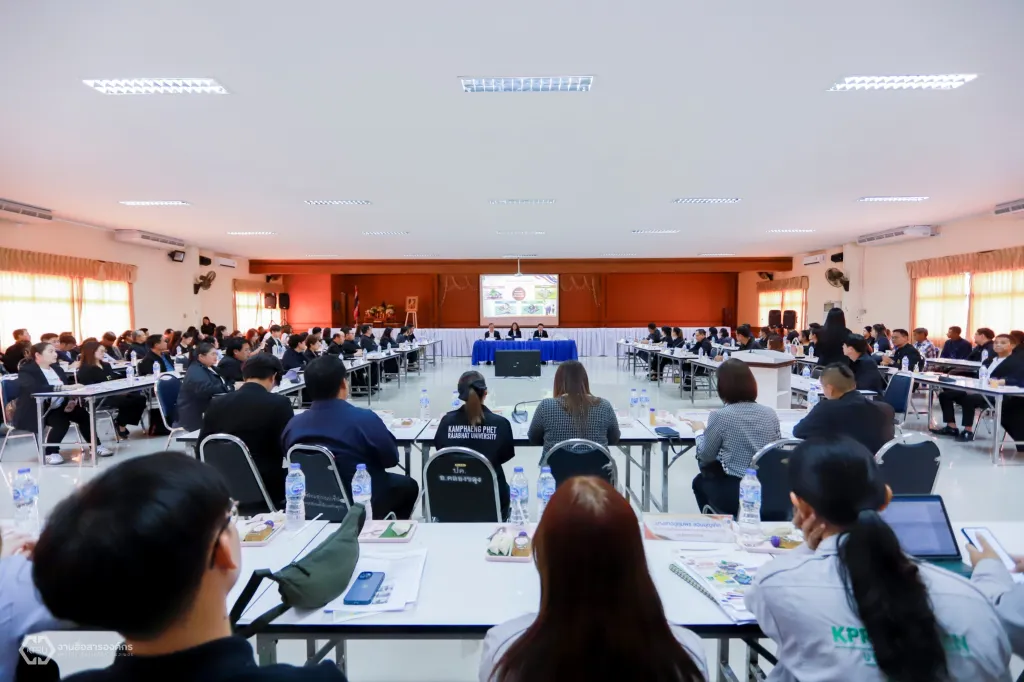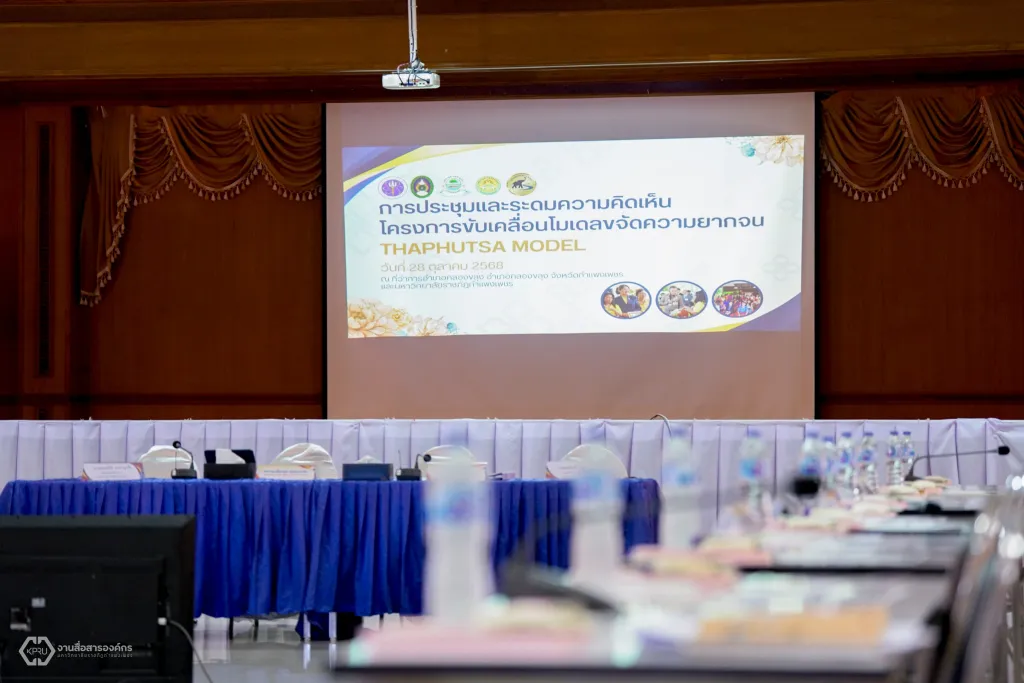 เมื่อวันที่ 28 ตุลาคม 2568 ผู้ช่วยศาสตราจารย์ ดร.ปรียานุช พรหมภาสิต อธิการบดีมหาวิทยาลัยราชภัฏกำแพงเพชร ได้นำคณะผู้บริหาร ประกอบด้วย รองอธิการบดี คณบดีทั้ง 6 คณะ ผู้อำนวยการสำนัก/สถาบัน ทั้ง 5 หน่วยงาน และผู้แทนอาจารย์และเจ้าหน้าที่จากคณะ ศูนย์ สำนัก ต่างๆ รวมกว่า 70 คน เข้าประชุมร่วมกับ นายสดุดี พุทธัง นายอำเภอคลองขลุง นายรุ่งโรจน์ รัตนศรี นายกองค์การบริหารส่วนตำบลท่าพุทรา , นายสุทัศน์ จาดดำ นายกเทศมนตรีเมืองท่าพุทรา , นายกรเกียรติ พรมจวง และ นายก้องพิภพ มณีประกร เป็นผู้แทนภาคเอกชน รวมถึงผู้แทนประชาชน และผู้แทนสมาชิกกลุ่มวิสาหกิจชุมชน จำนวนผู้เข้าร่วมทั้งสิ้น 87 คน โดยได้รับเกียรติจาก นายอนันต์ ผลอำนวย สมาชิกสภาผู้แทนราษฎร เขต 3 จังหวัดกำแพงเพชร และนายมนต์ชัย รุ่งชาญชัญ ประธานกรรมการส่งเสริมกิจการมหาวิทยาลัย เพื่อวางแผนขับเคลื่อนโมเดลขจัดความยากจน THAPHUTSA MODEL ประจำปีงบประมาณ 2569 ณ หอประชุมที่ว่าการอำเภอคลองขลุง อำเภอคลองขลุง จังหวัดกำแพงเพชร