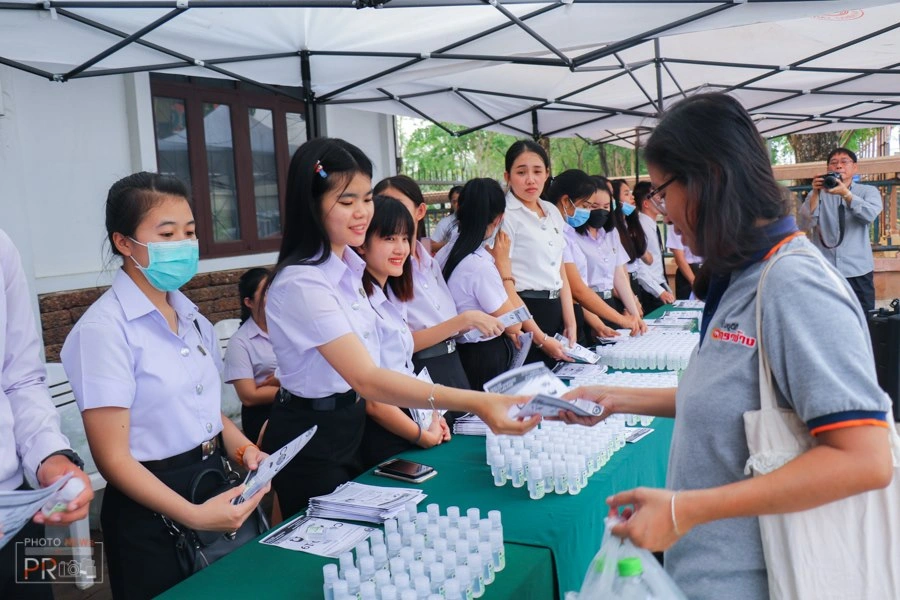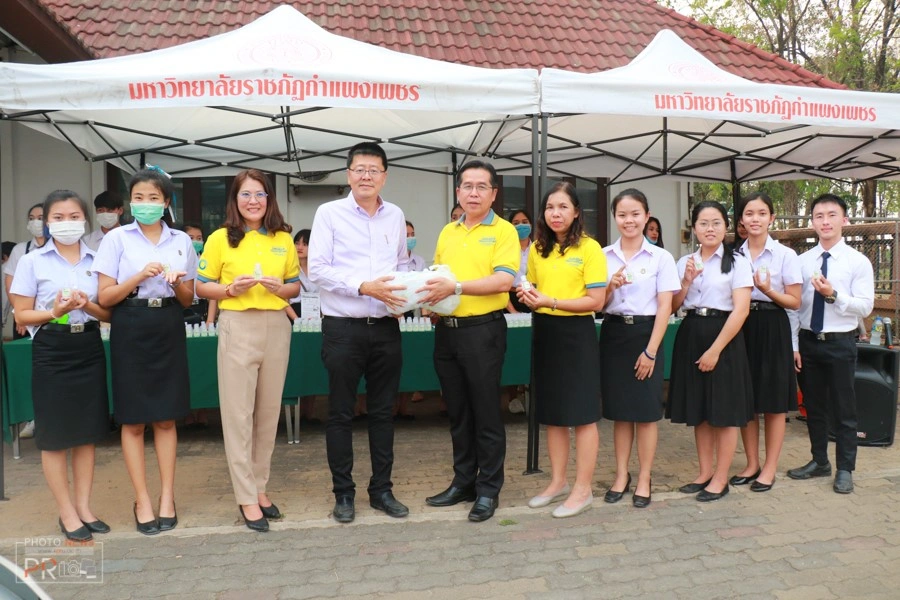 เมื่อวันที่ 12 มีนาคม 2563 เวลา 17.00 น. ที่หน้าสำนักงานหอการค้าจังหวัดกำแพงเพชร บริเวณตลาดไนท์บลาซ่า มหาวิทยาลัยราชภัฏกำแพงเพชร จัดกิจกรรม “จิตอาสา ร่วมต้านไวรัส COVID-19” นำโดย รองศาสตราจารย์ ดร.สุวิทย์ วงษ์บุญมาก อธิการบดี พร้อมด้วย ผู้ช่วยศาสตราจารย์ ดร.ปรียานุช พรหมภาสิต รองอธิการบดี และคณาจารย์ เจ้าหน้าที่ นักศึกษา มหาวิทยาลัยราชภัฏกำแพงเพชร แจกแอลกอฮอล์เจล ขนาด 30 ml จำนวน 4,000 ขวด และคู่มือการป้องกันตัวเองจากไวรัสโคโรนา 2019 ให้กับพี่น้องประชาชนชาวจังหวัดกำแพงเพชร ในโอกาสนี้ อธิการบดีได้มอบแอลกอฮอล์เจล จำนวน 40 ขวด ให้กับหอการค้าจังหวัดกำแพงเพชร